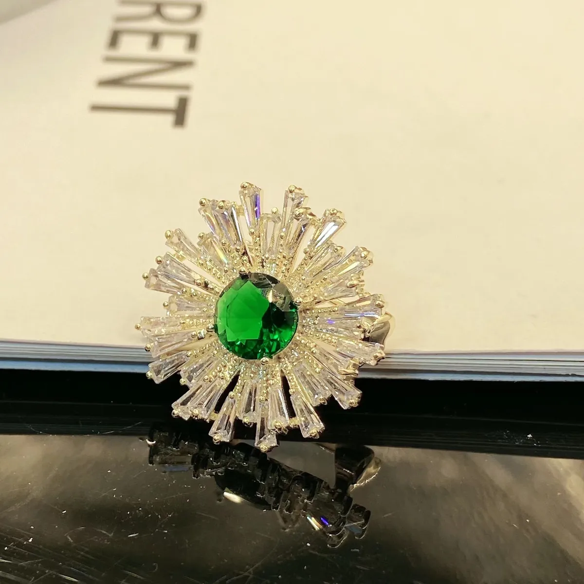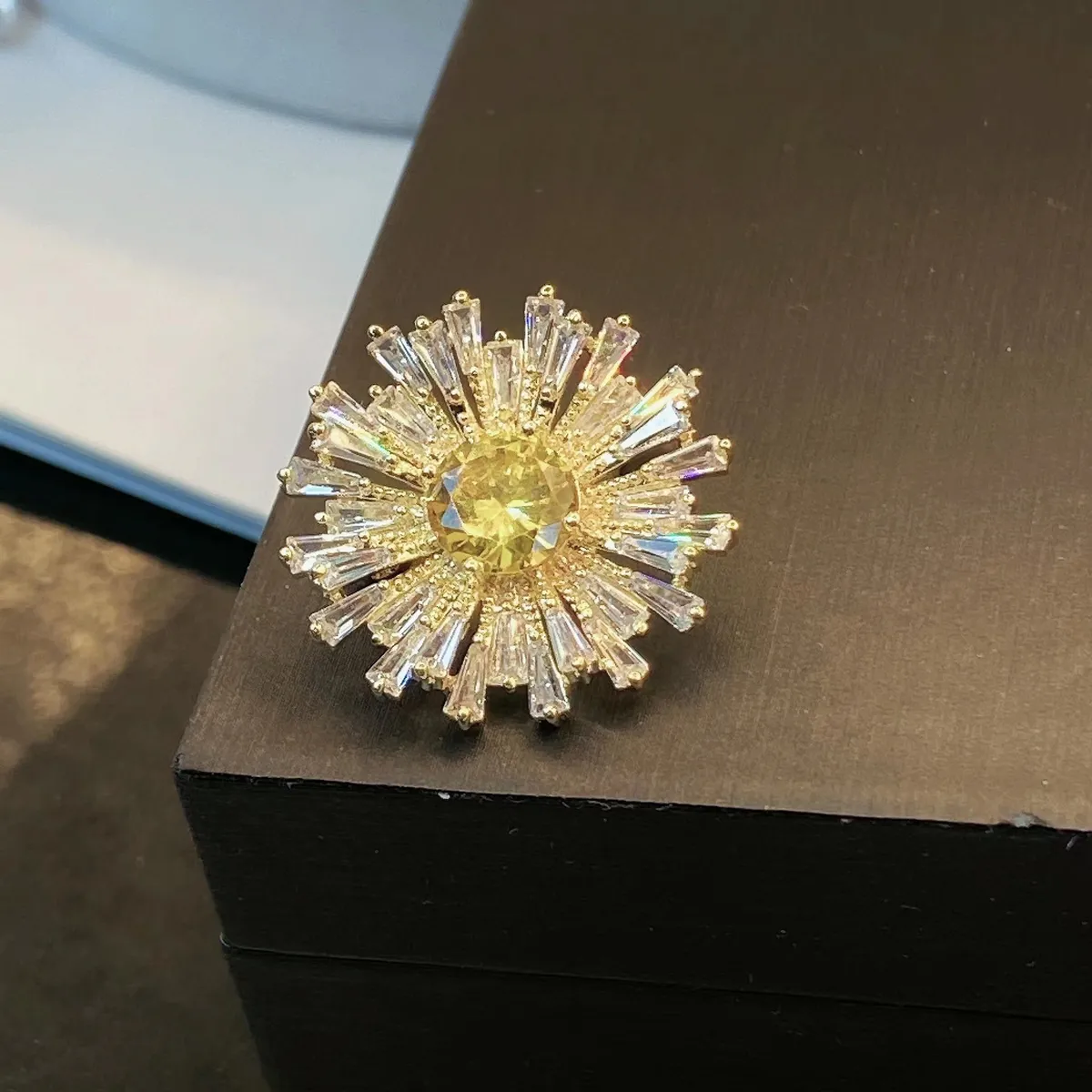 衣都精品- 新款精緻高檔滿鋯太陽花胸針