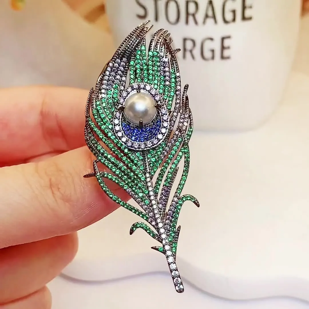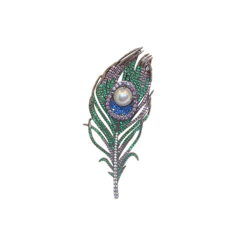衣都精品- 新款精緻高級彩色孔雀大羽毛胸針