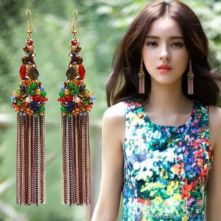 衣都精品- 新款歐美波西米亞流蘇誇張耳環