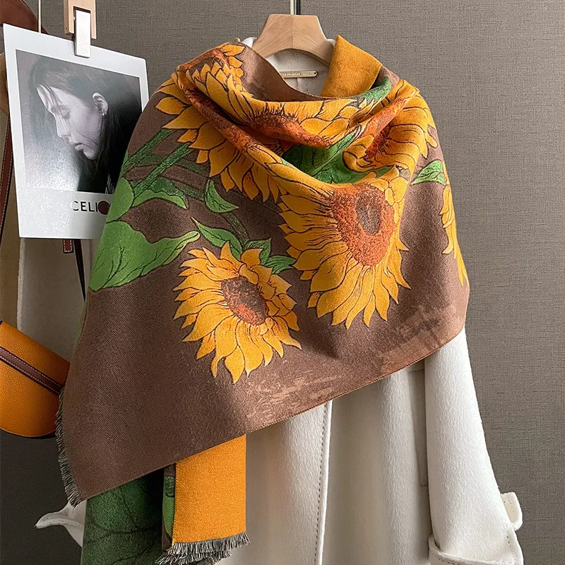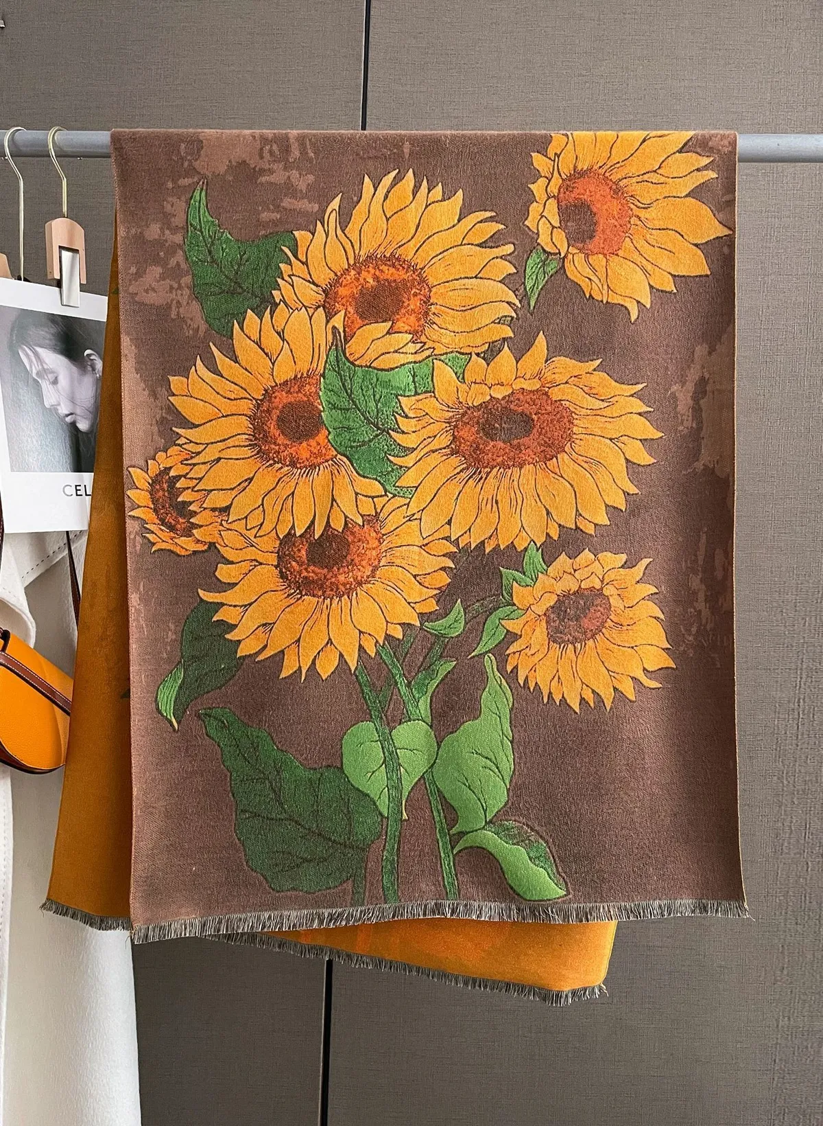 衣都精品- 新款韓版印花時尚向日葵仿羊絨圍巾