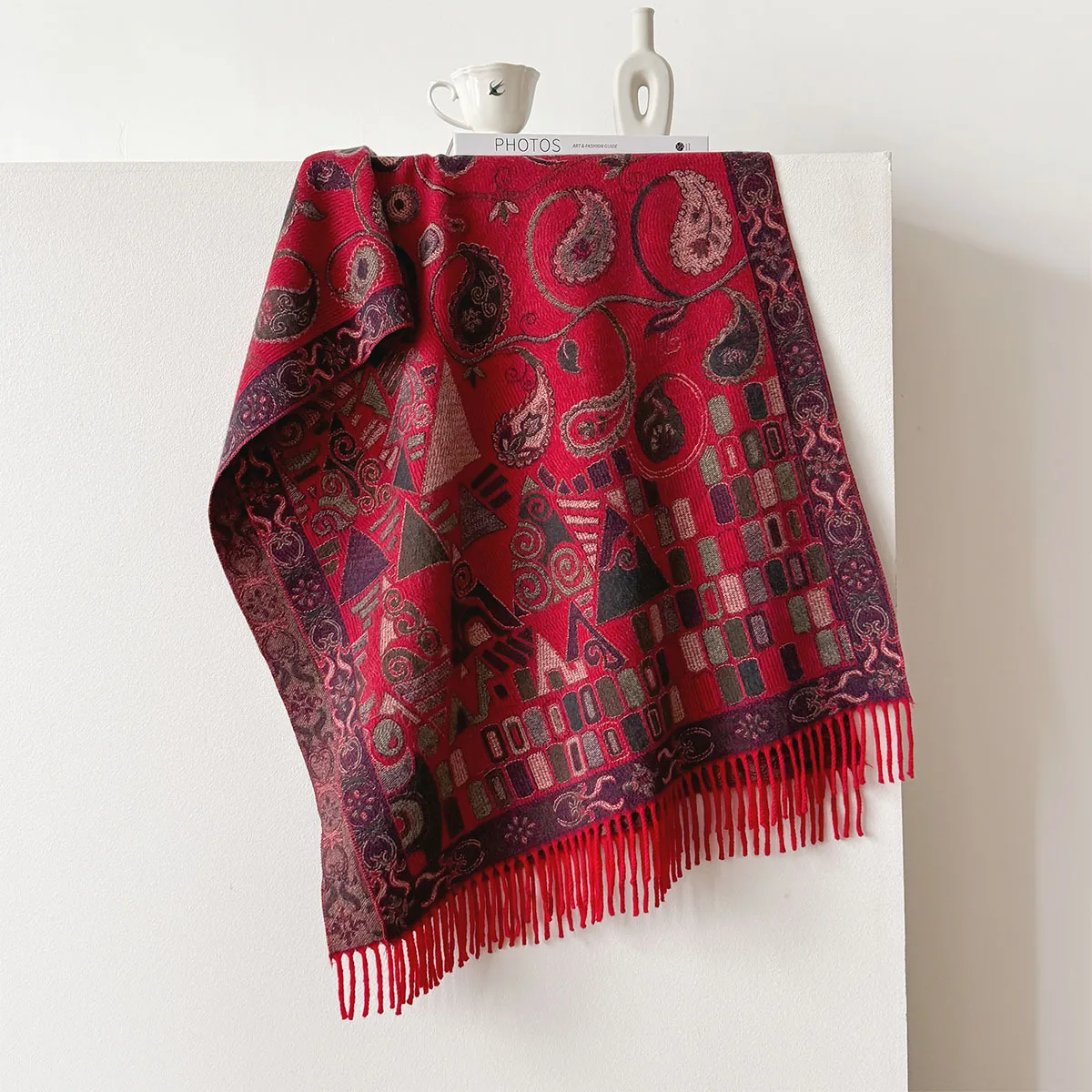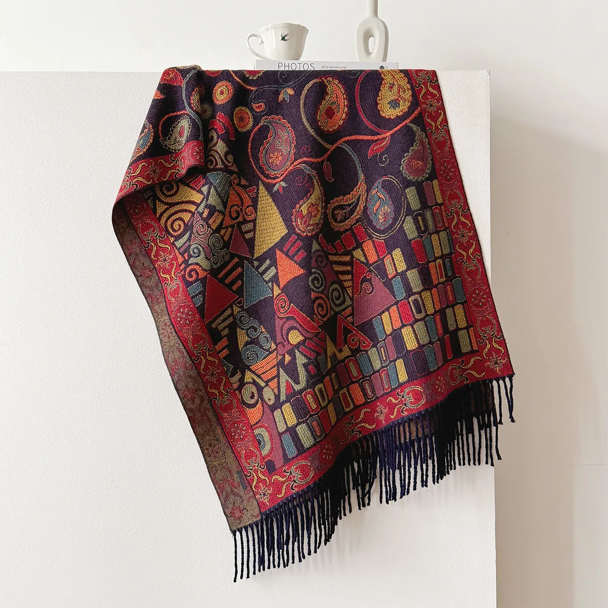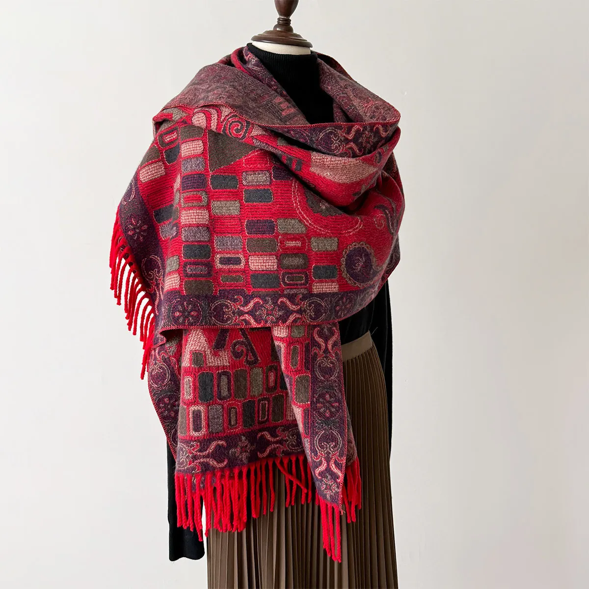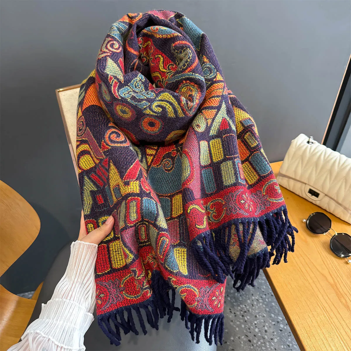 衣都精品- 新款民族風加厚高級提花仿羊絨圍巾