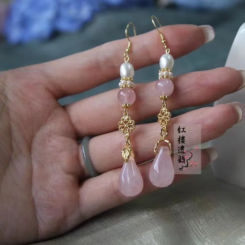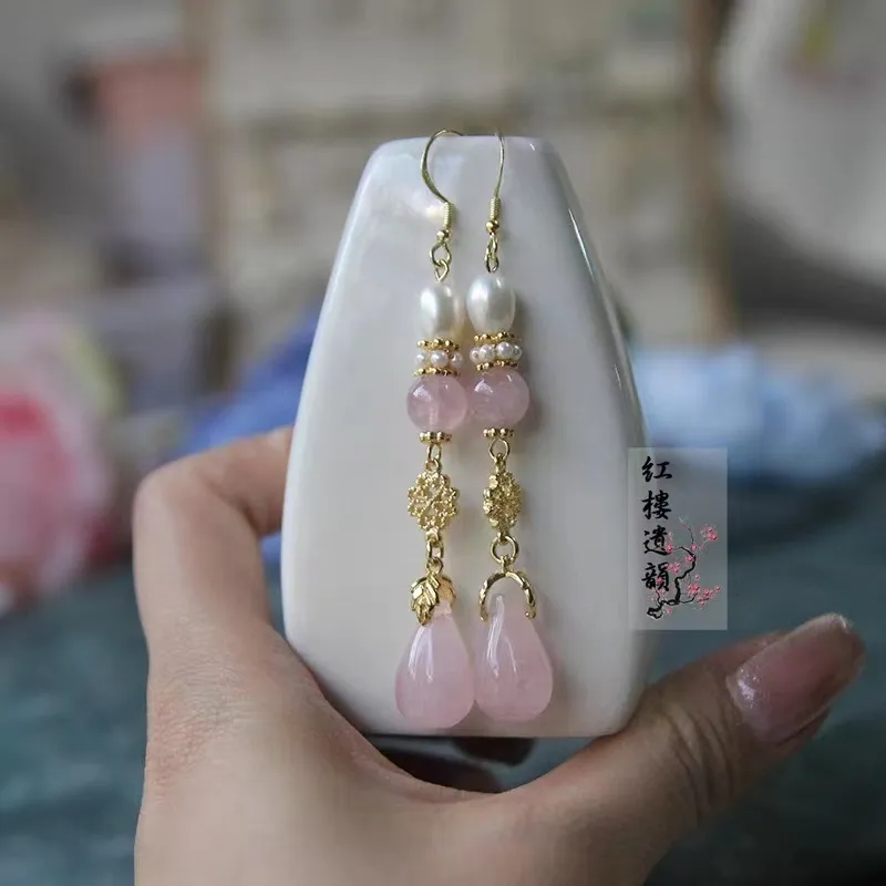 衣都精品- 新款天然粉晶新中式玉蘭花苞耳墜