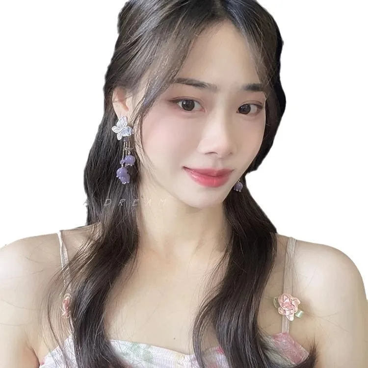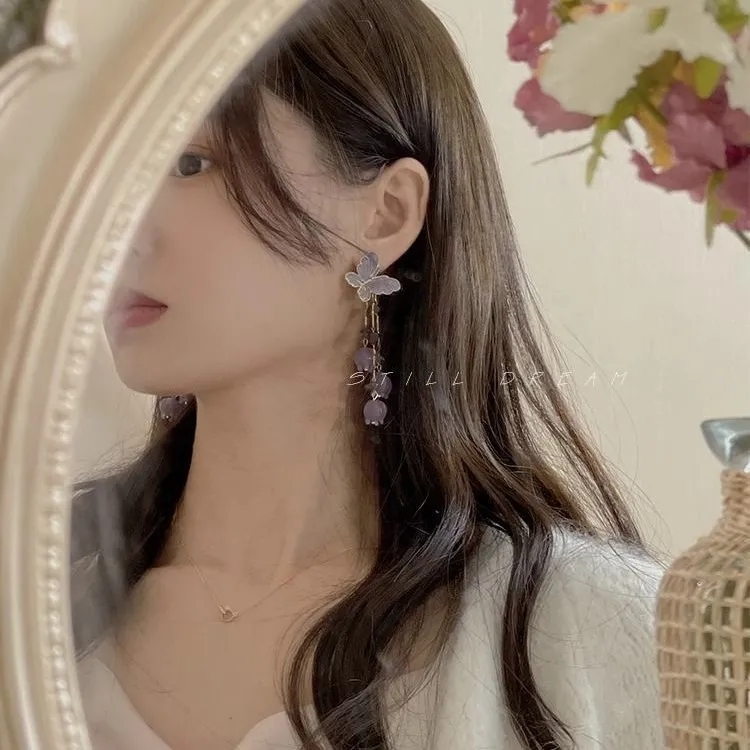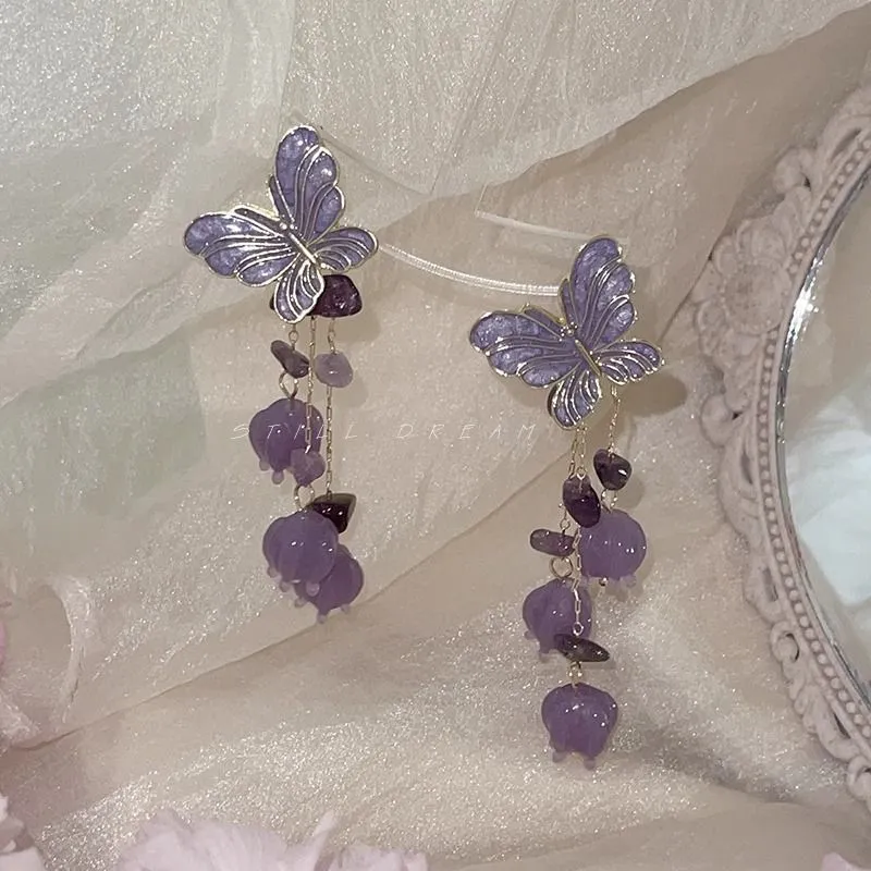 衣都精品- 新款紫色風鈴仙氣蝴蝶流蘇耳飾