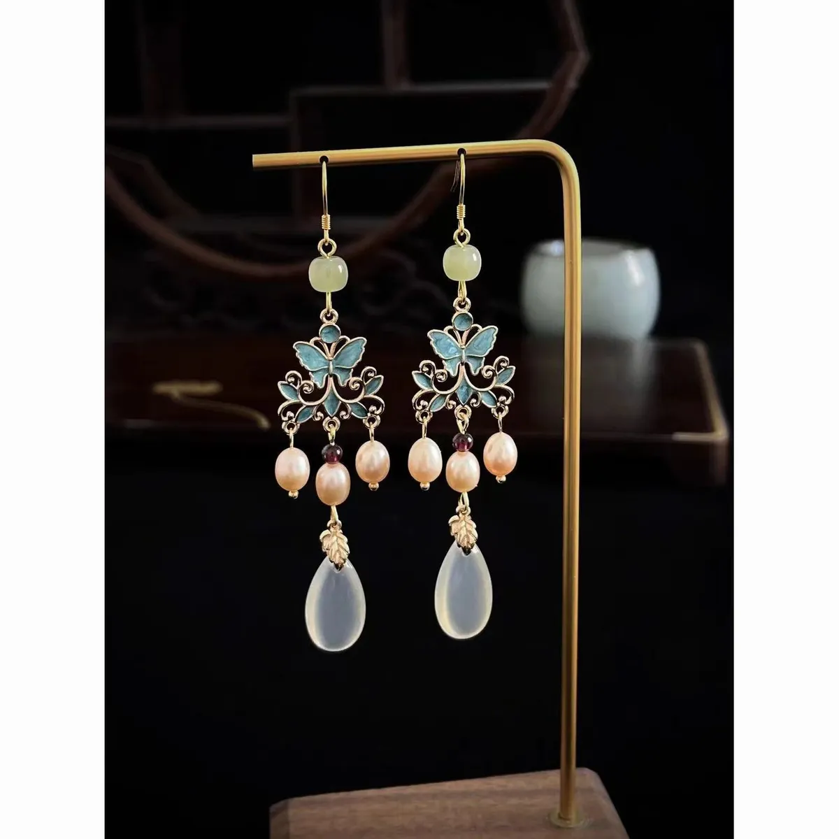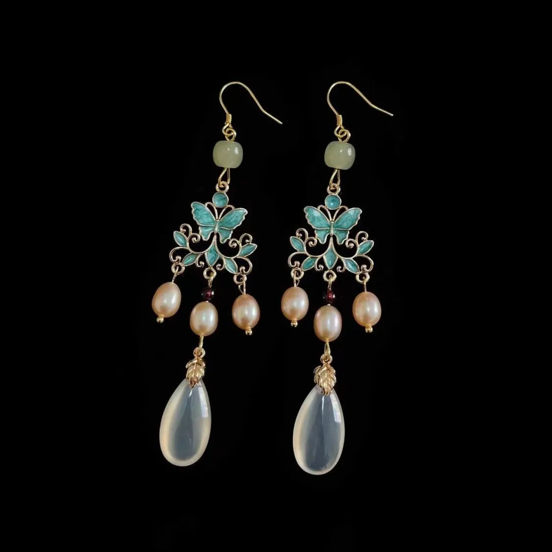 衣都精品- 新款民族風千秋蝶夢珍珠耳飾