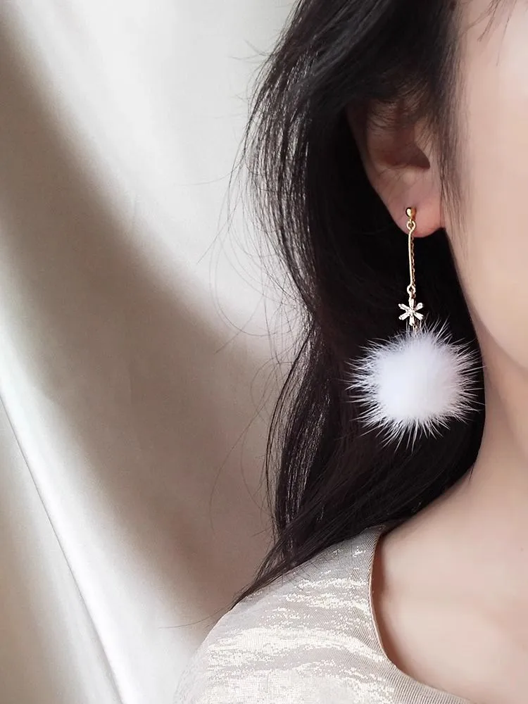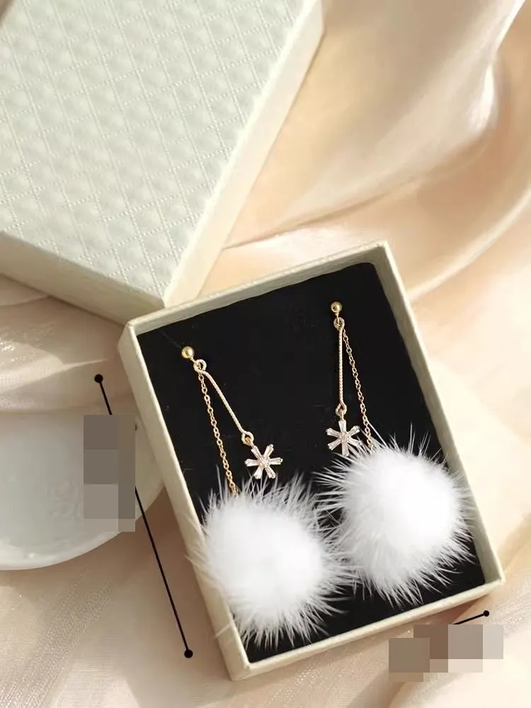 衣都精品- 新款水貂毛雪花鋯石超仙系耳飾