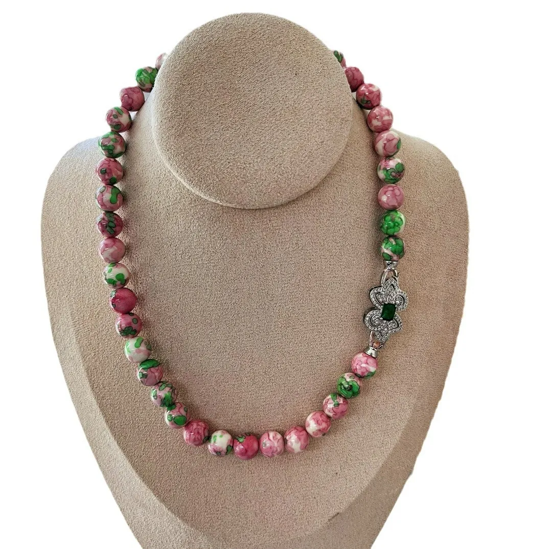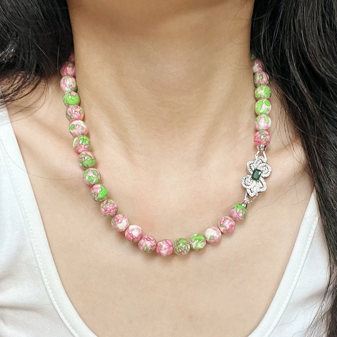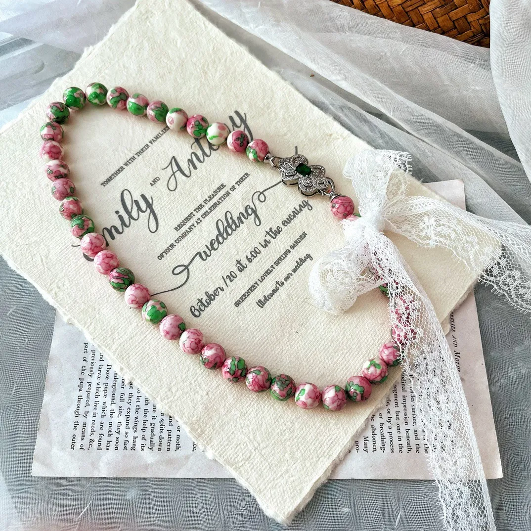 衣都精品- 新款復古甜桃粉綠琉璃陶瓷項鍊