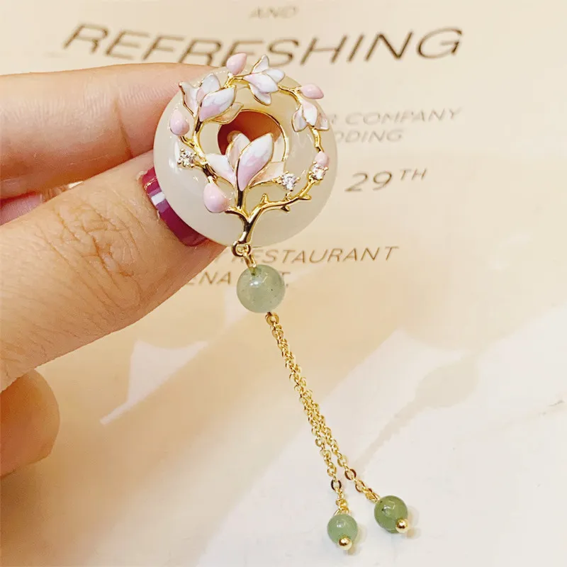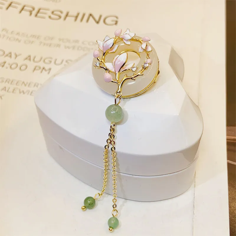 衣都精品- 新款中式古風粉色蘭花流蘇胸針