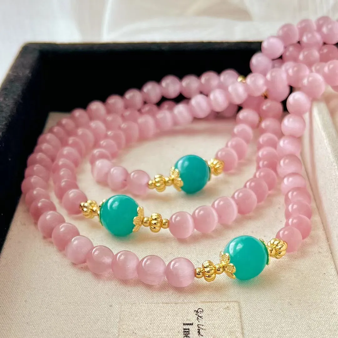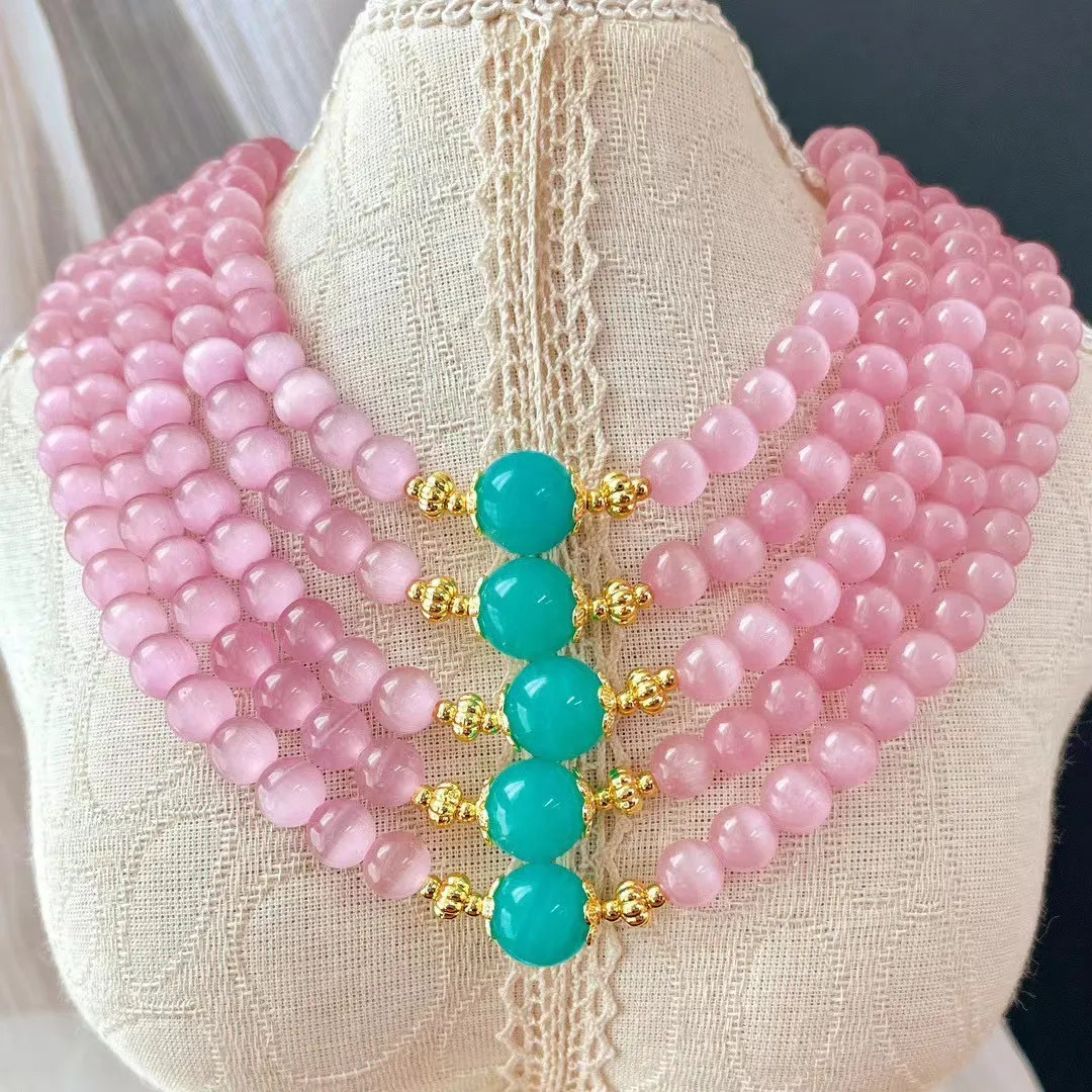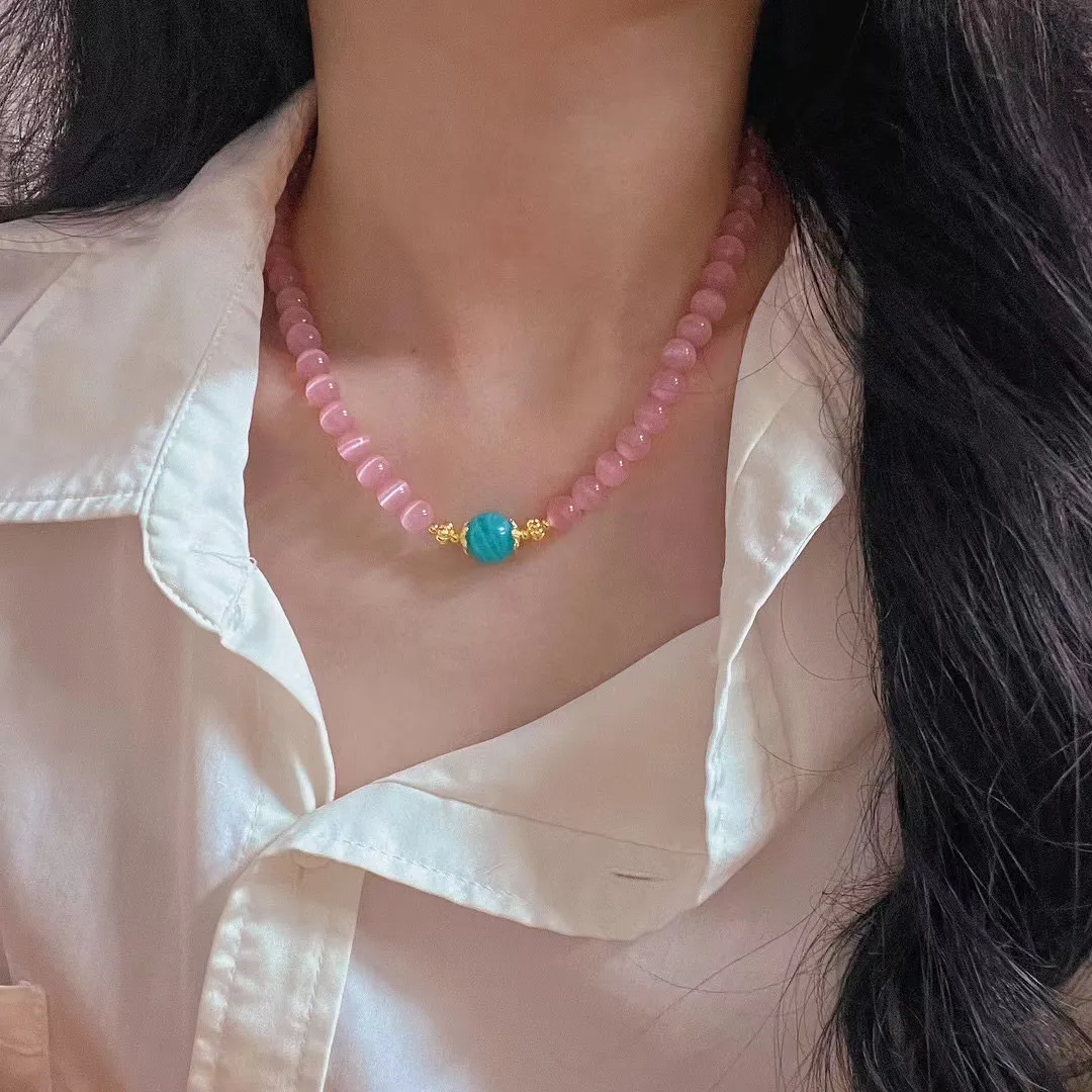 衣都精品- 新款復古天河石人造粉色貓眼石鎖骨鏈項鍊