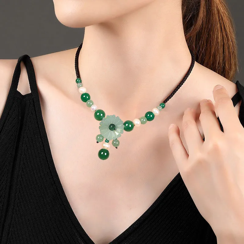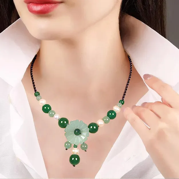 衣都精品- 新款復古民族風綠瑪瑙長款項鍊