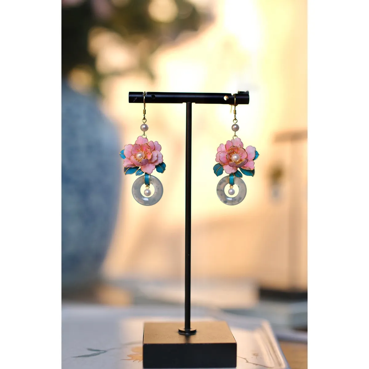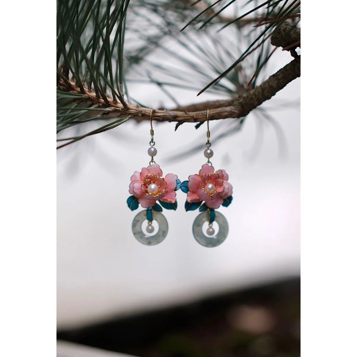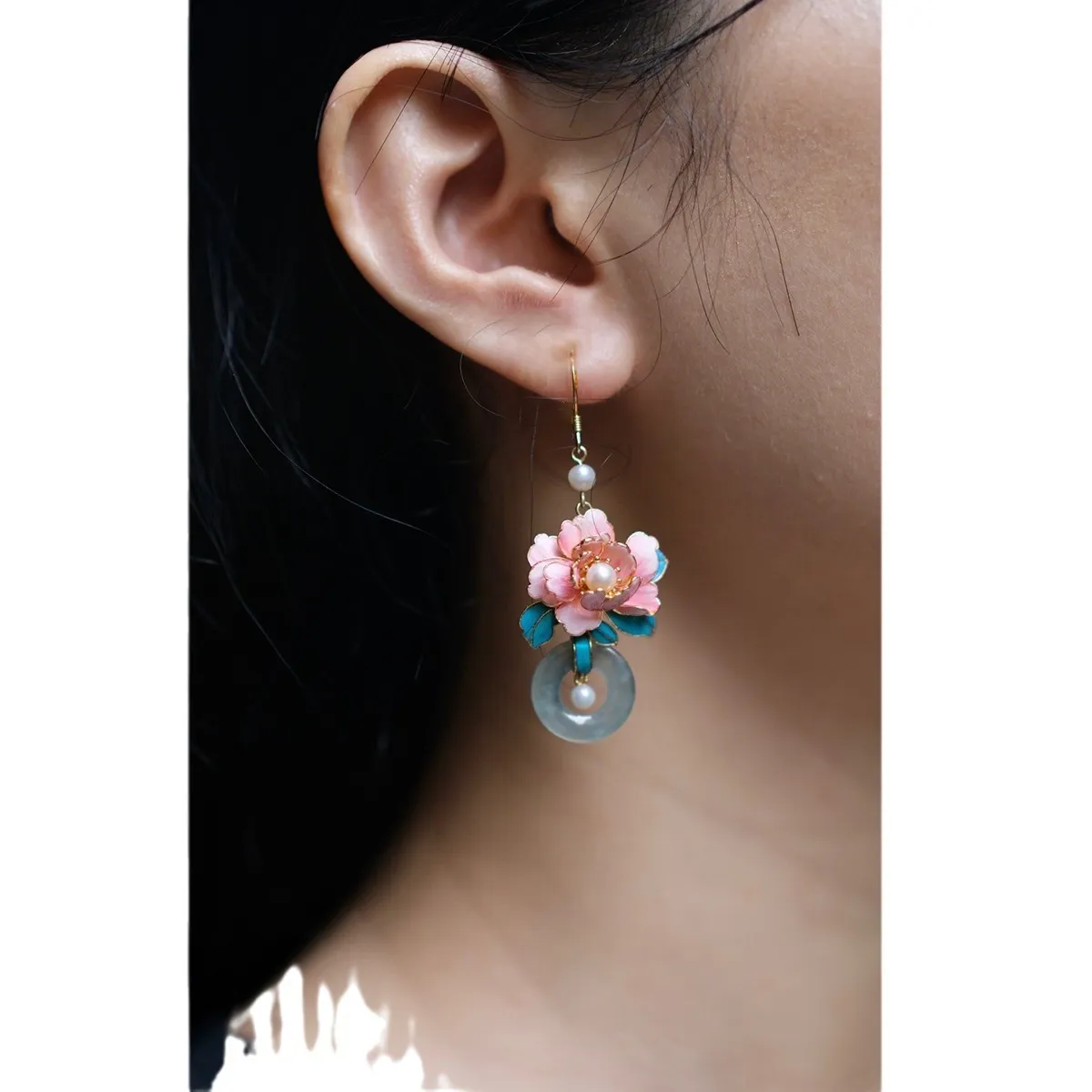 衣都精品- 新款仿點翠花絲牡丹花朵耳環