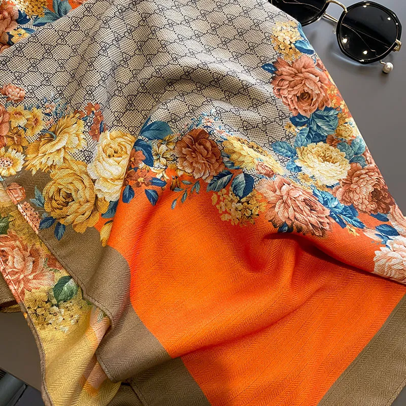 衣都精品- 新款雙面印花復古仿綿羊毛時尚圍巾
