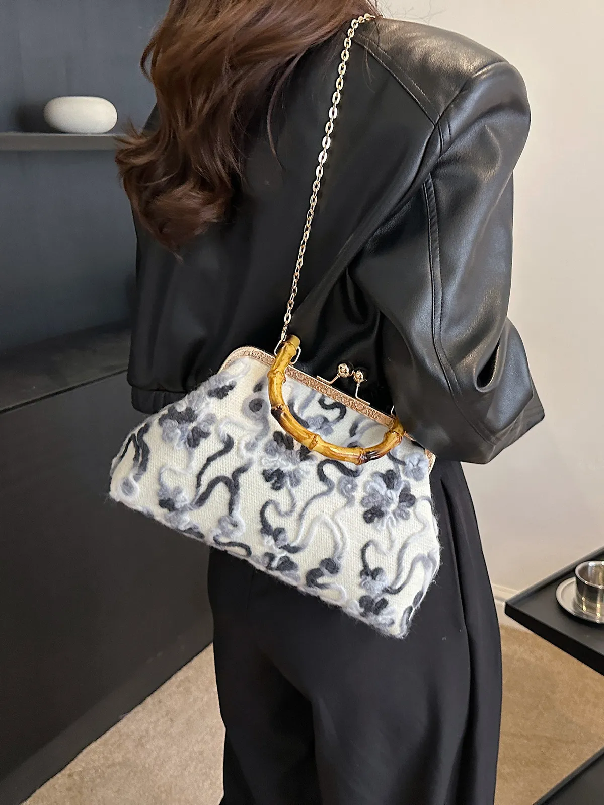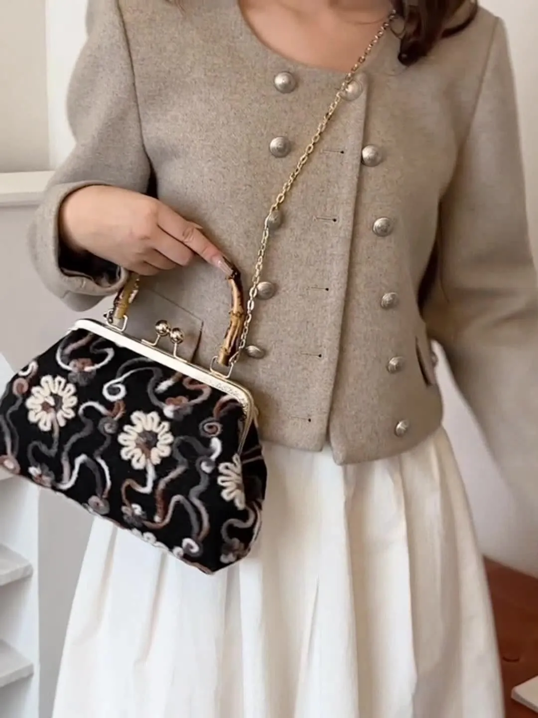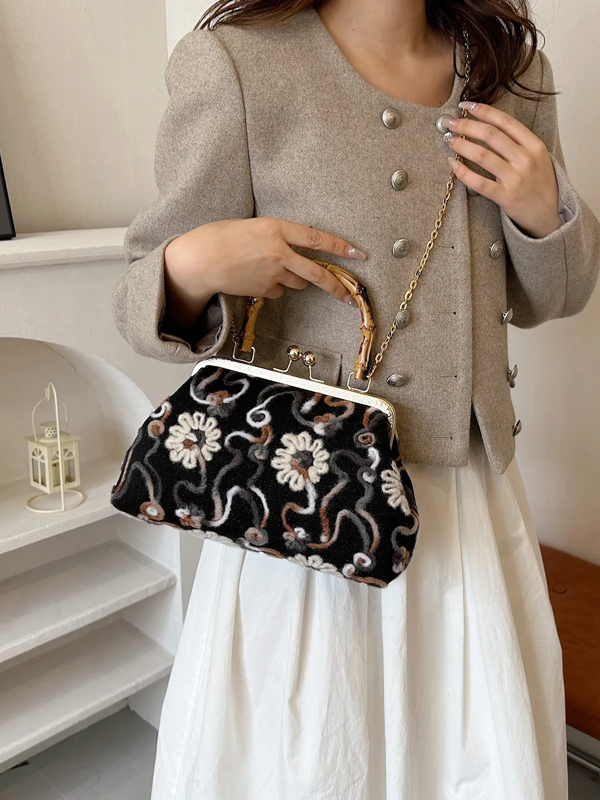 衣都精品- 新款中國風竹節花朵鏈條貝殼包