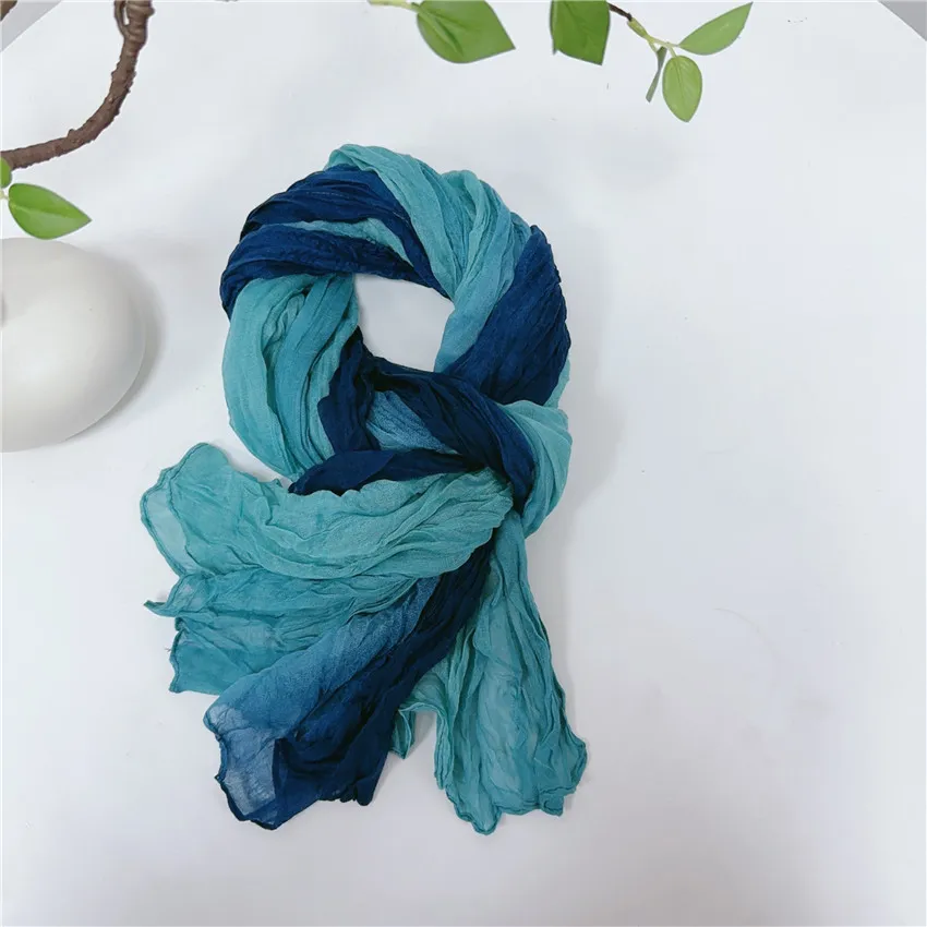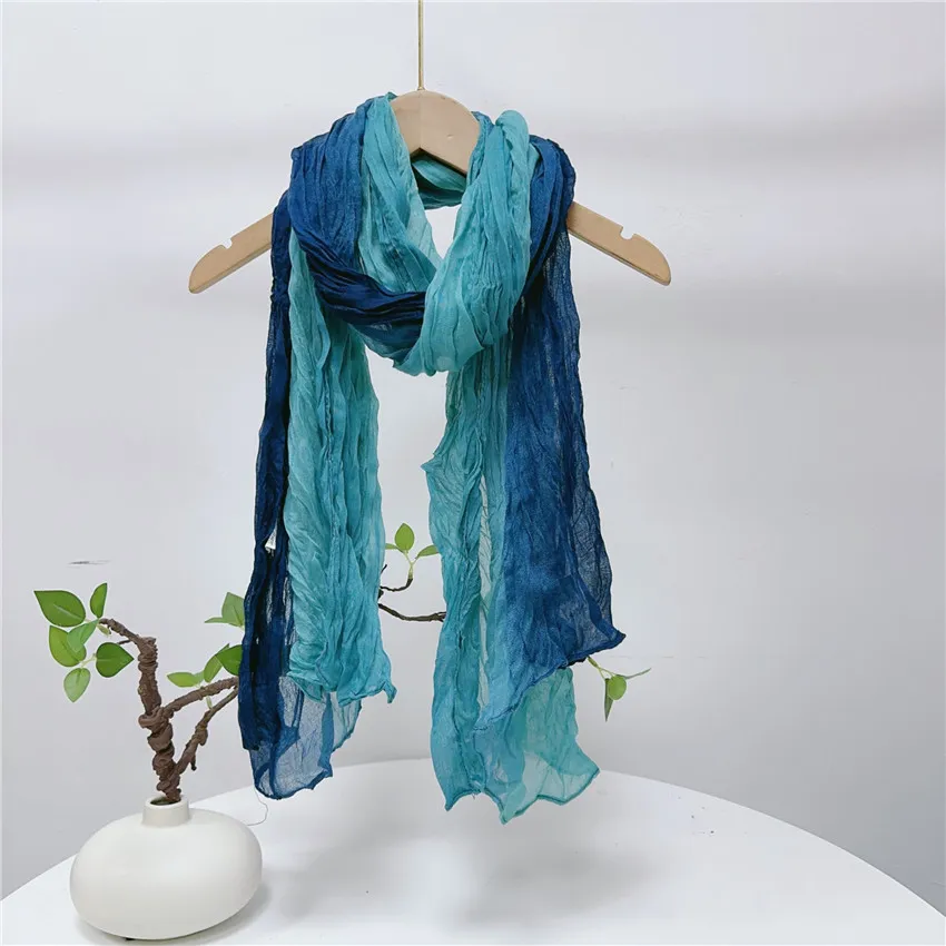衣都精品- 新款百搭褶皺漸變色圍巾