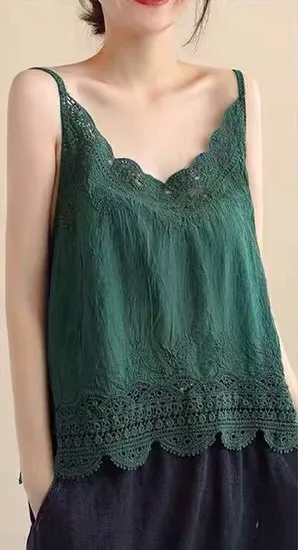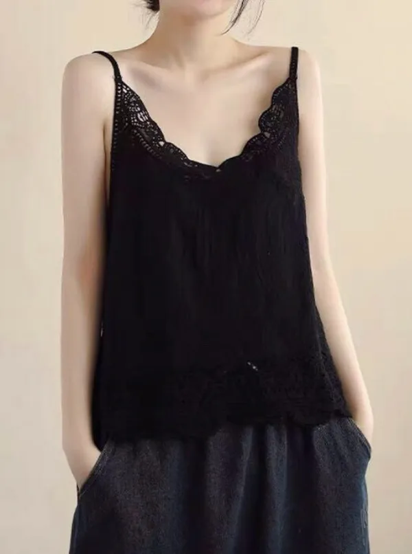 衣都精品- 新款文藝簡約百搭棉麻小吊帶上衣