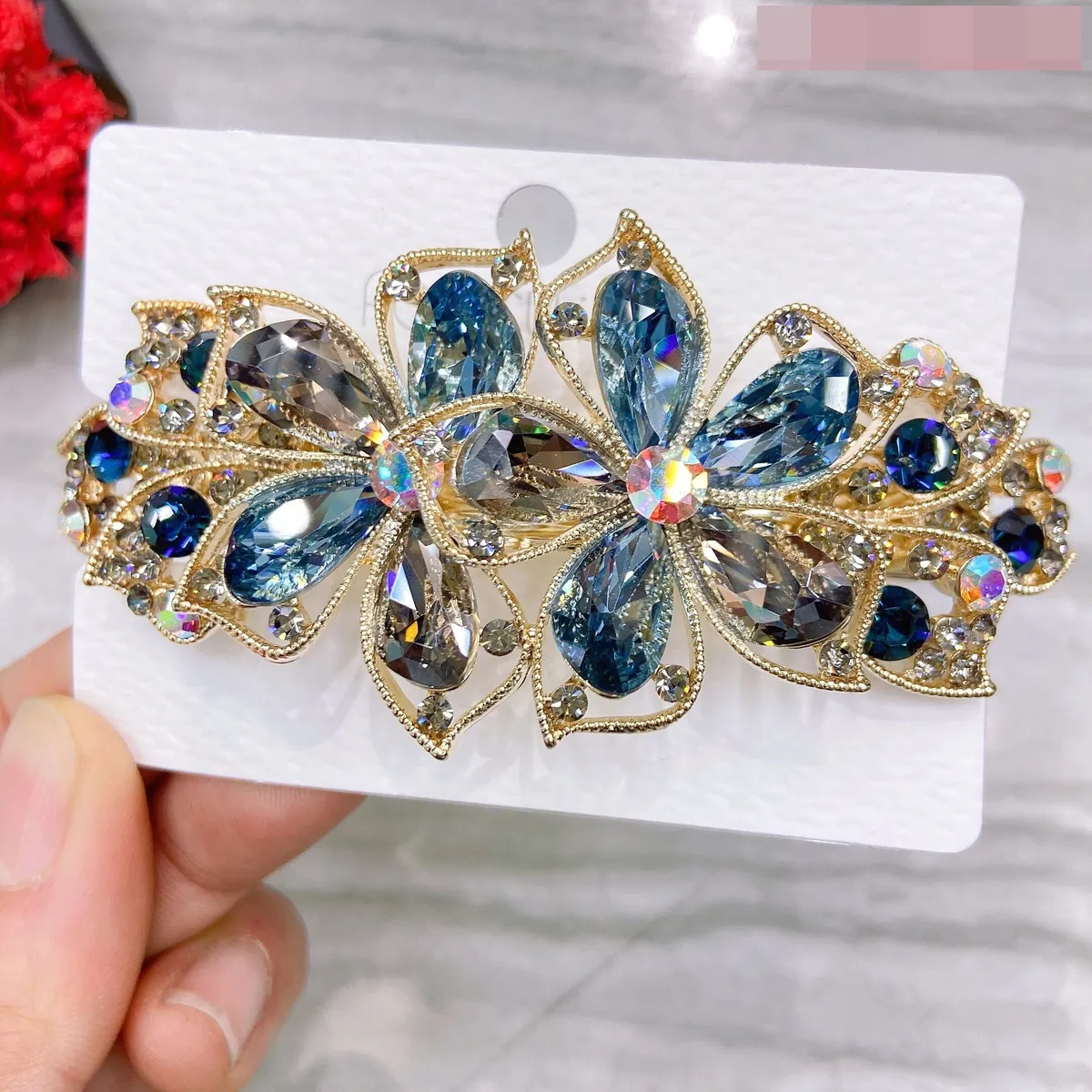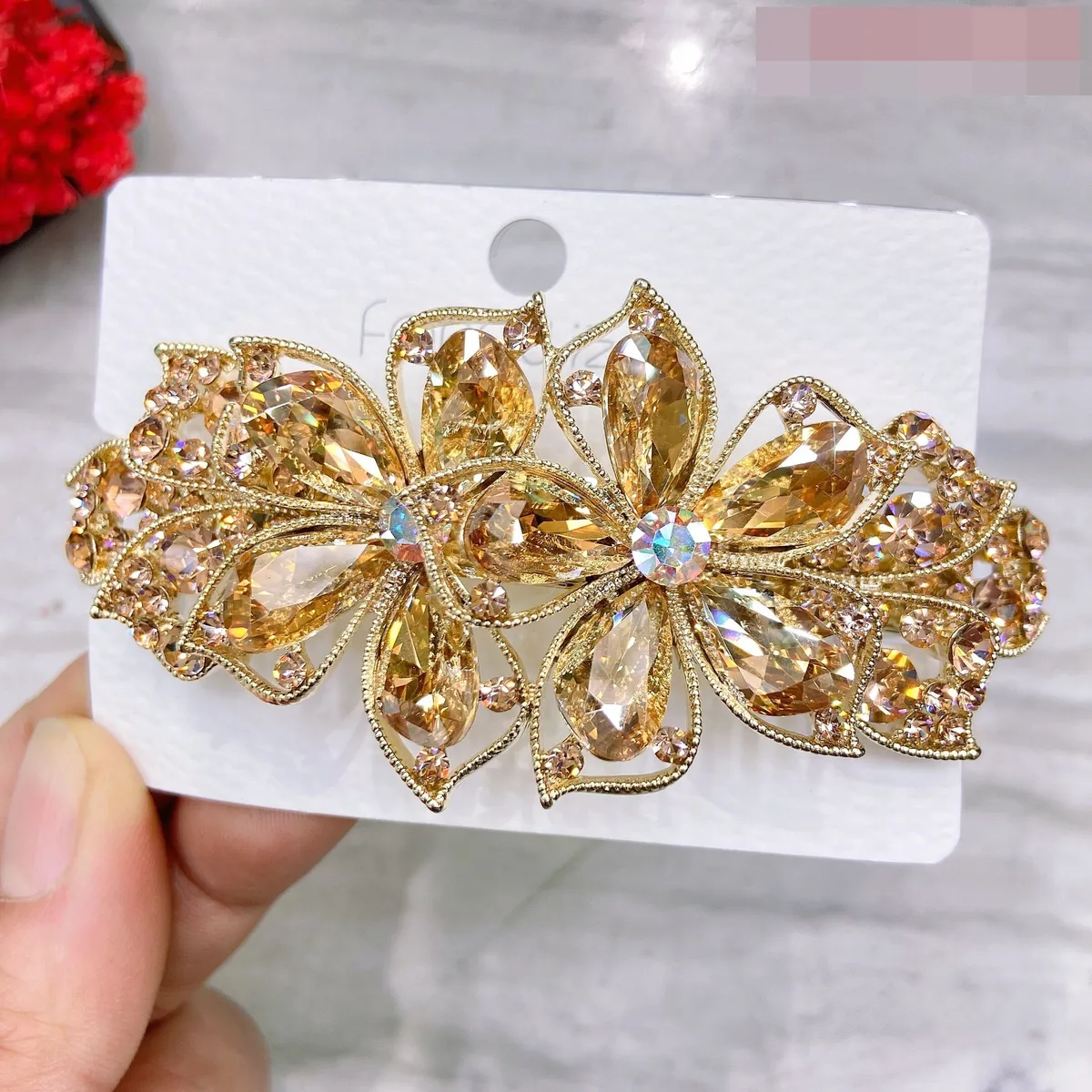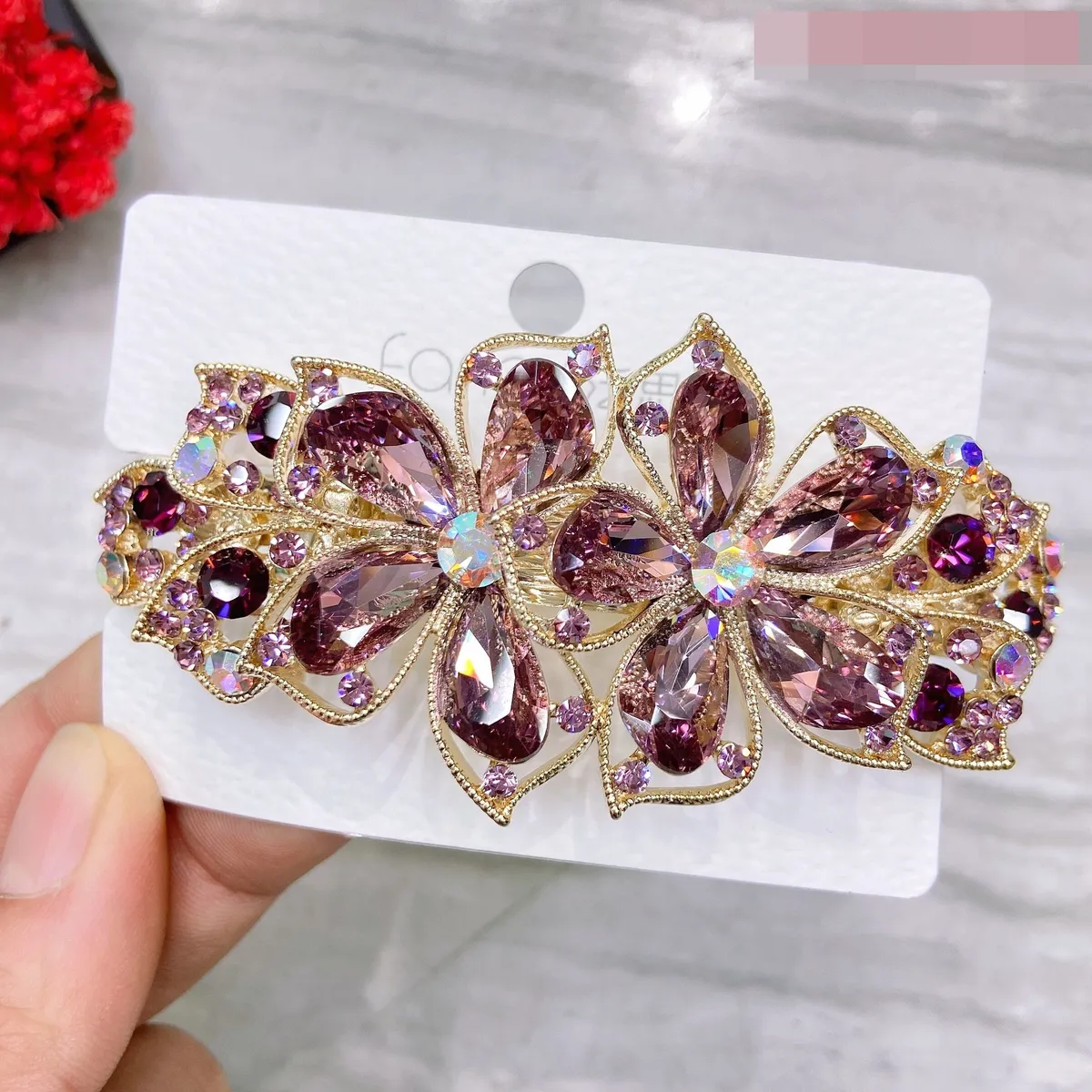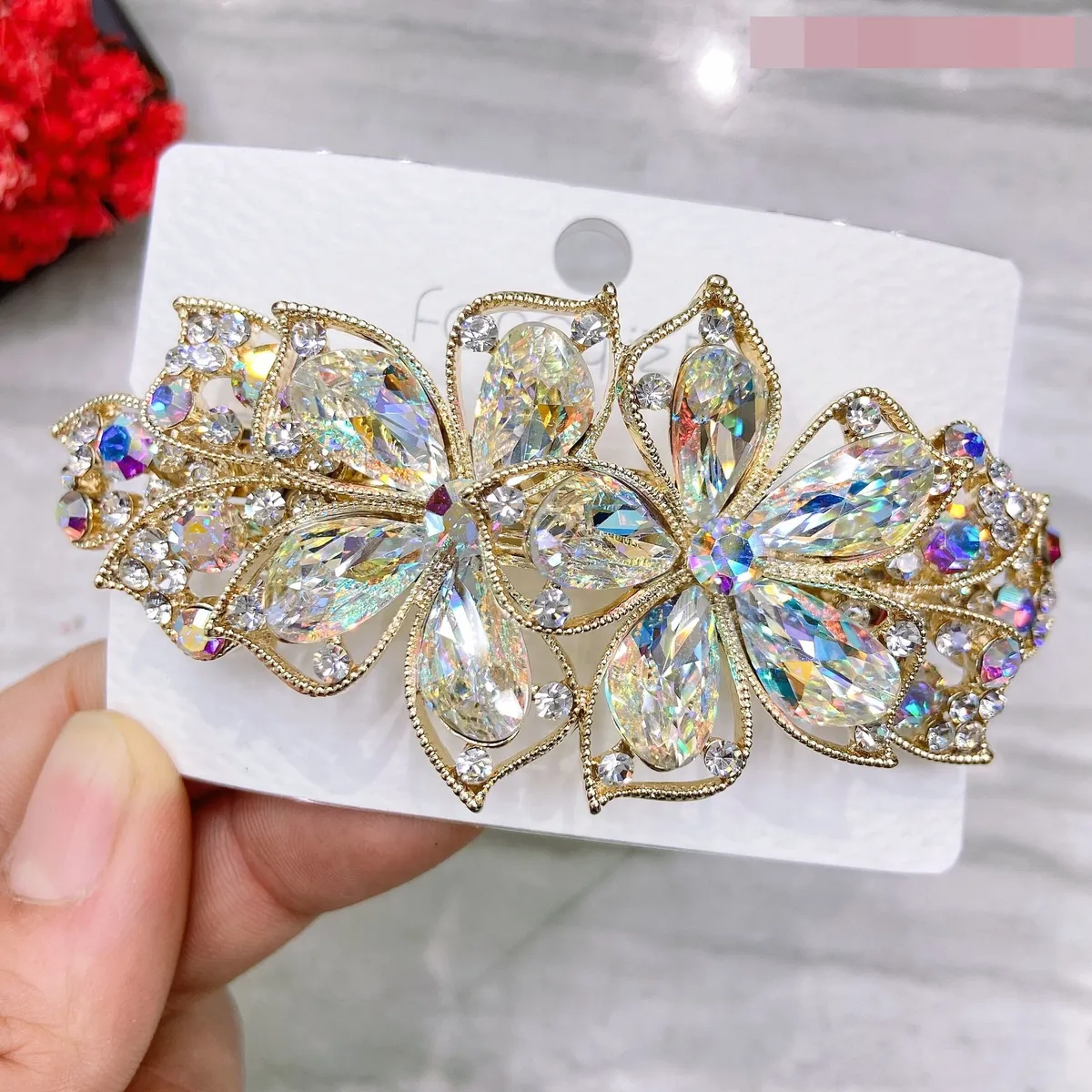 衣都精品- 新款奧鑽水晶花朵彈簧夾髮飾