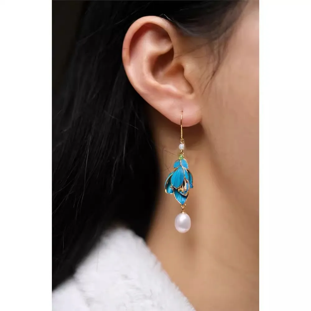 衣都精品- 新款復古傳統古典景泰藍琺瑯流蘇耳環