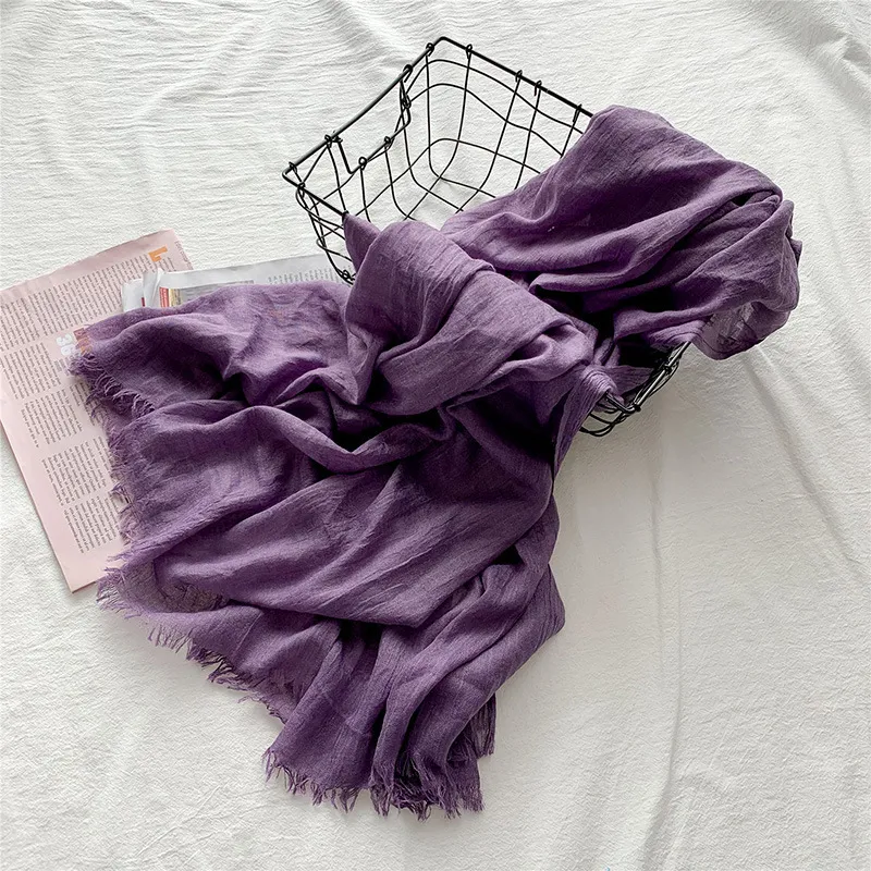 衣都精品- 新款韓版甜美防曬純色棉麻圍巾