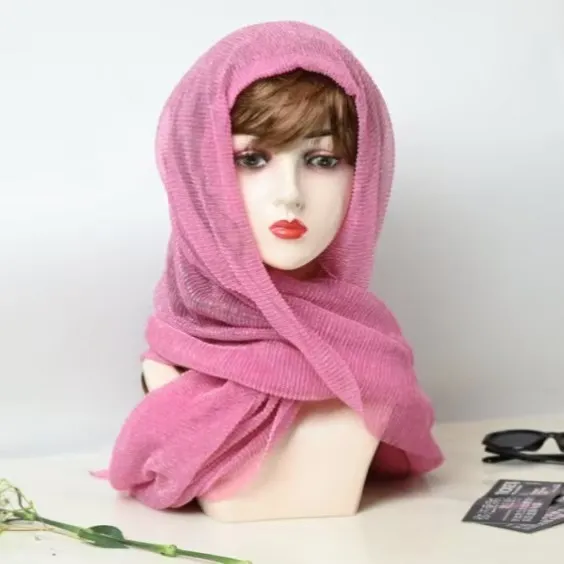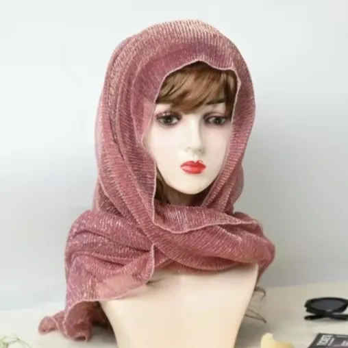 衣都精品- 新款時尚百搭純色包頭亮絲圍巾