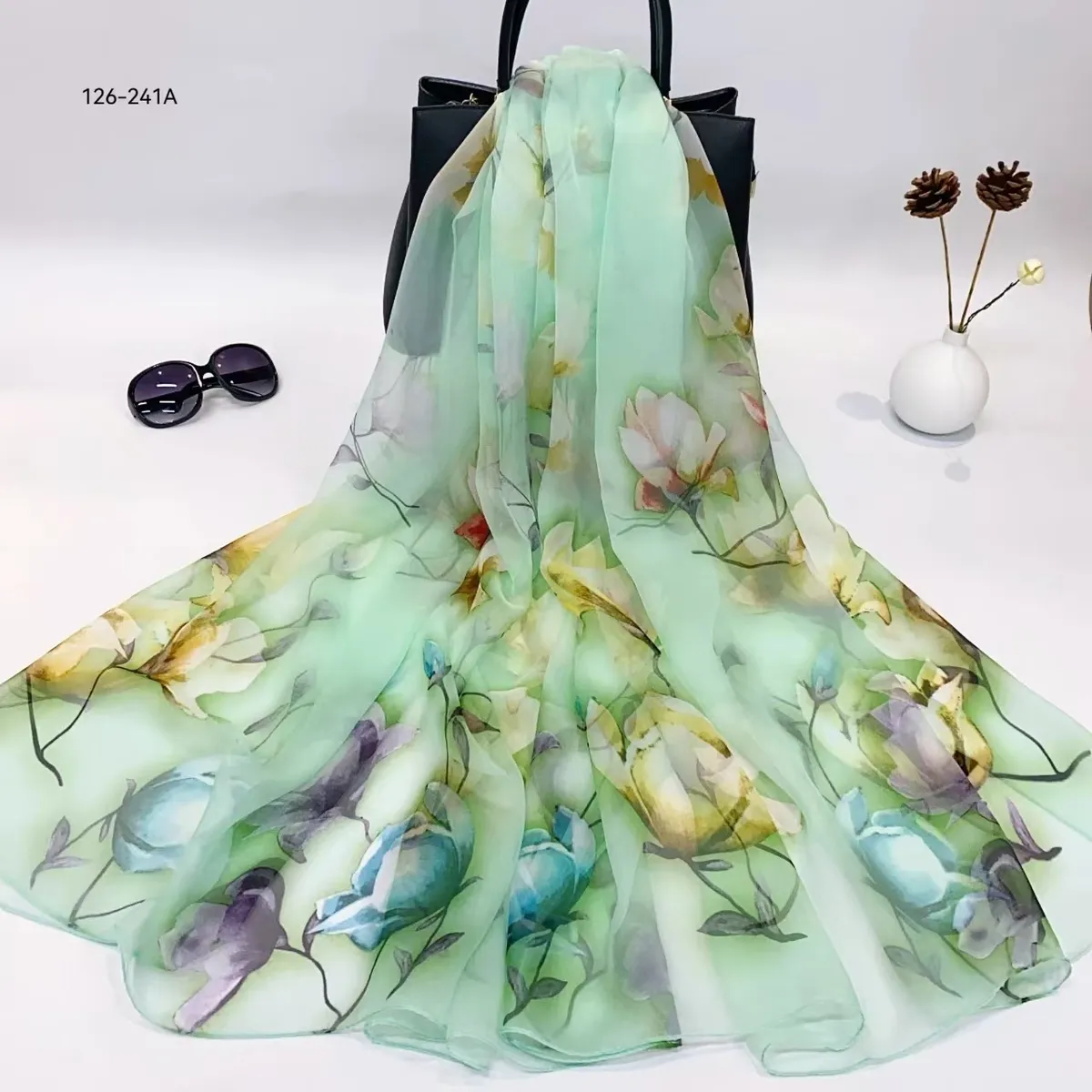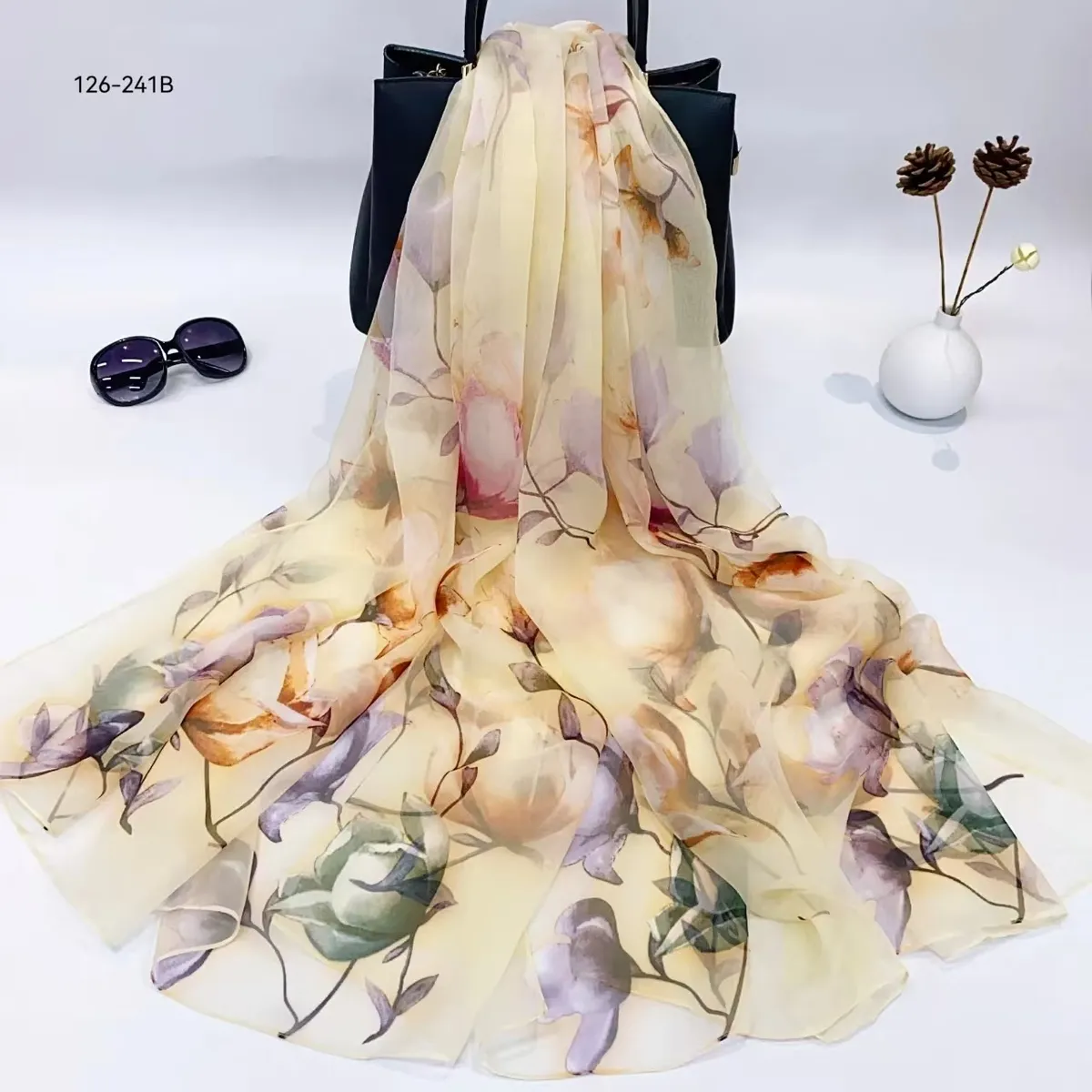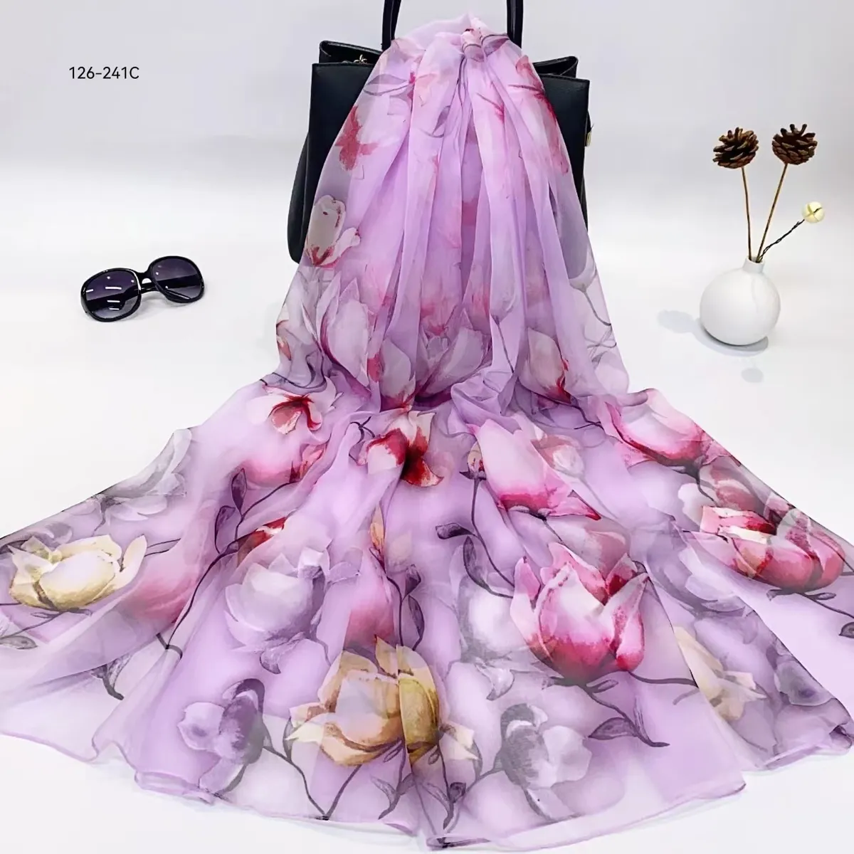 衣都精品- 新款百搭防曬優柔紗薄款印花絲巾