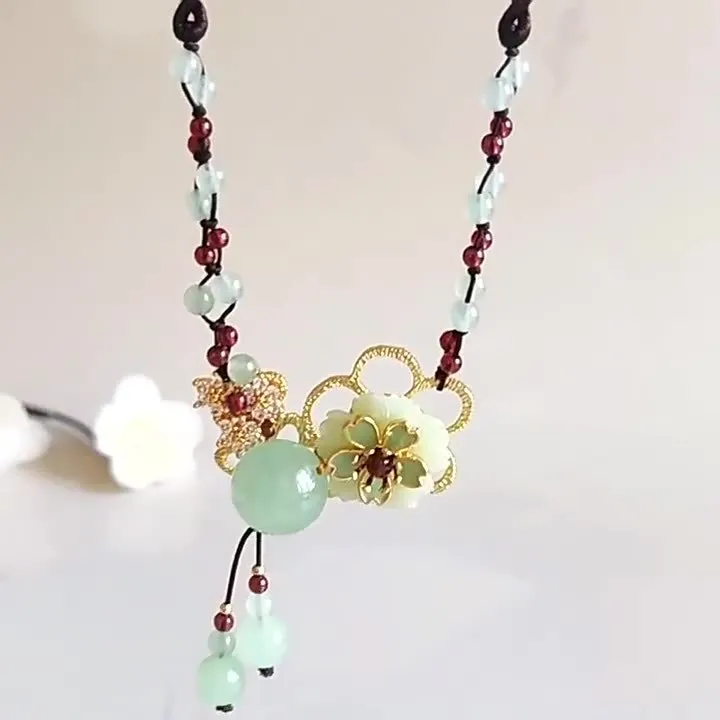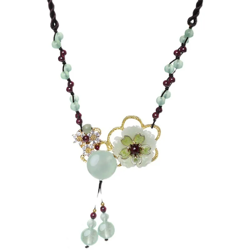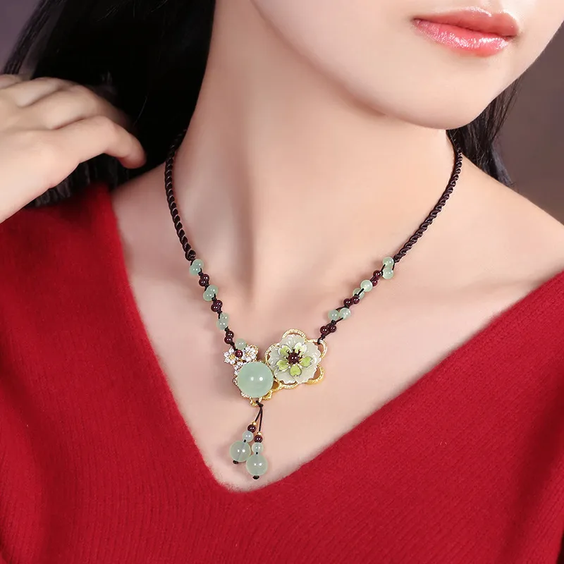 衣都精品- 新款民族風簡約氣質掛鏈岫玉吊墜項鍊