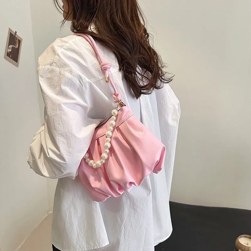 衣都精品- 新款時尚清新珍珠褶皺雲朵腋下包