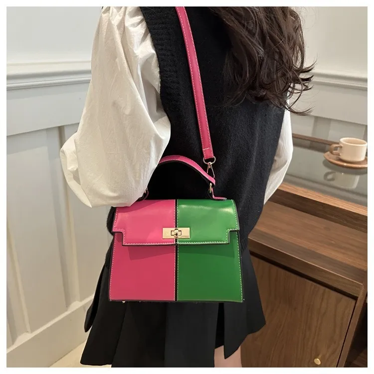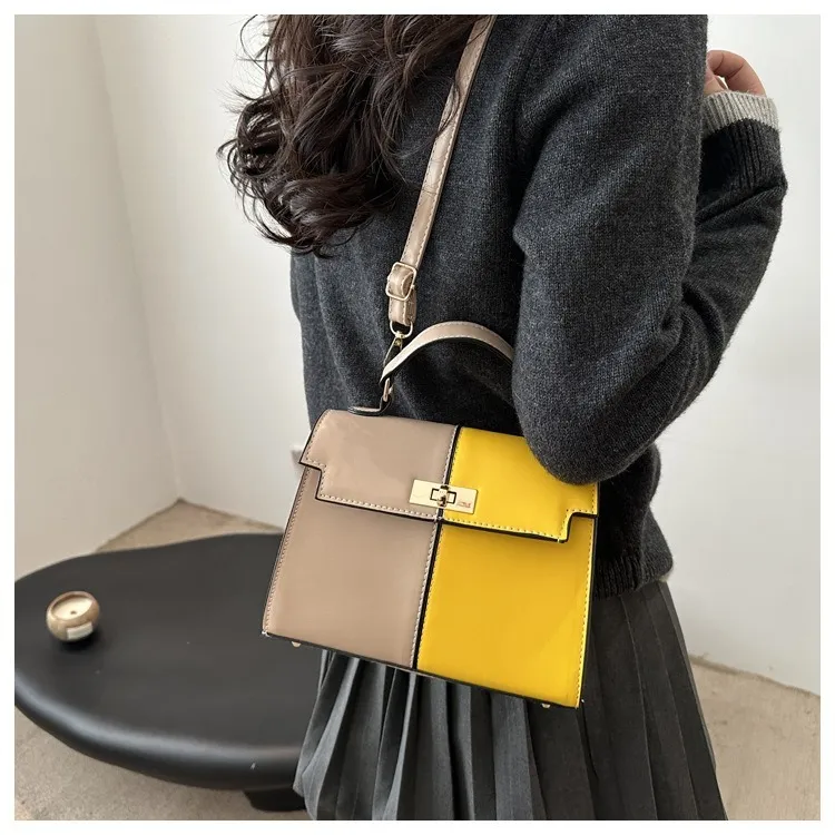 衣都精品- 新款時尚簡約撞色鎖扣斜挎單肩包