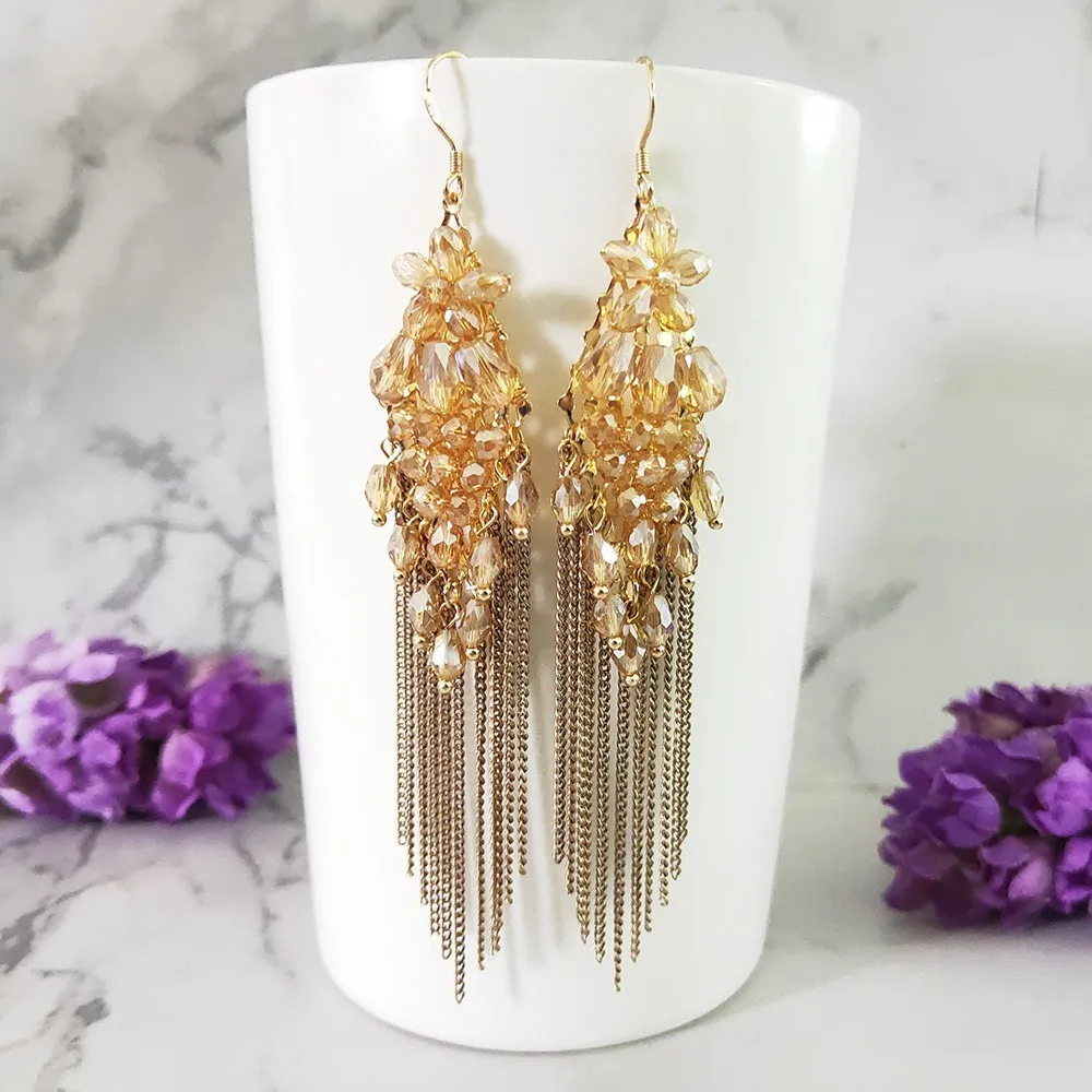 衣都精品- 新款超仙氣質長款流蘇手工編織耳環