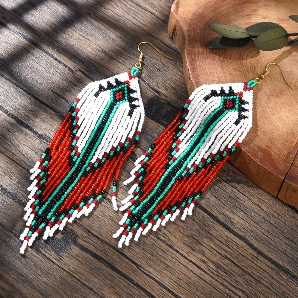 衣都精品- 新款輕奢高級感米珠編織流蘇耳環