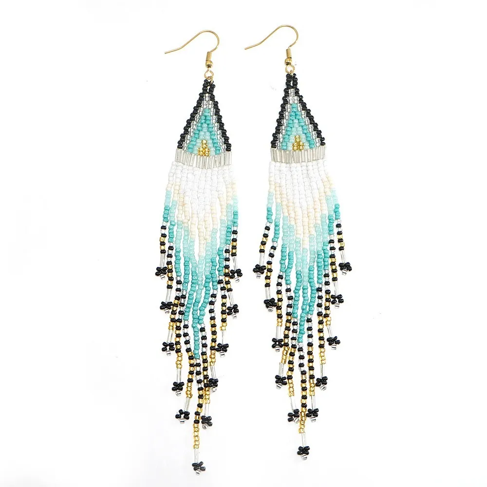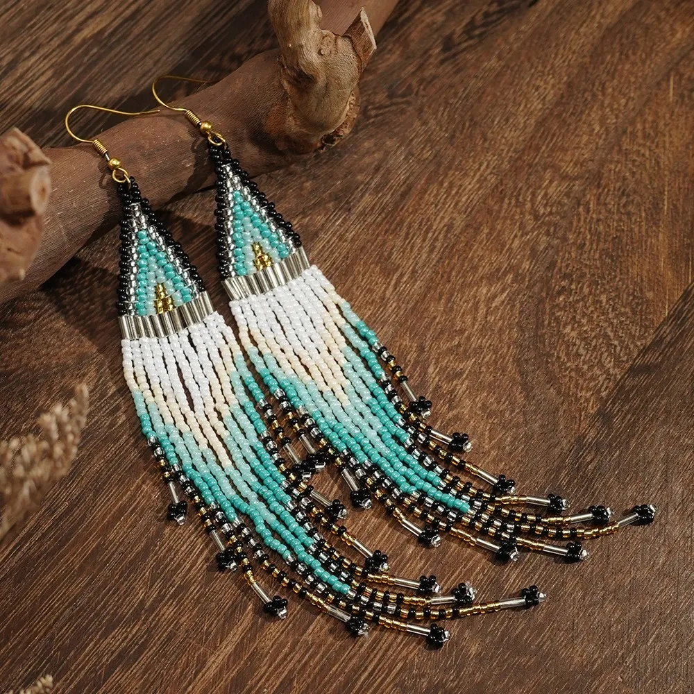 衣都精品- 新款輕奢高級感米珠編織流蘇耳環