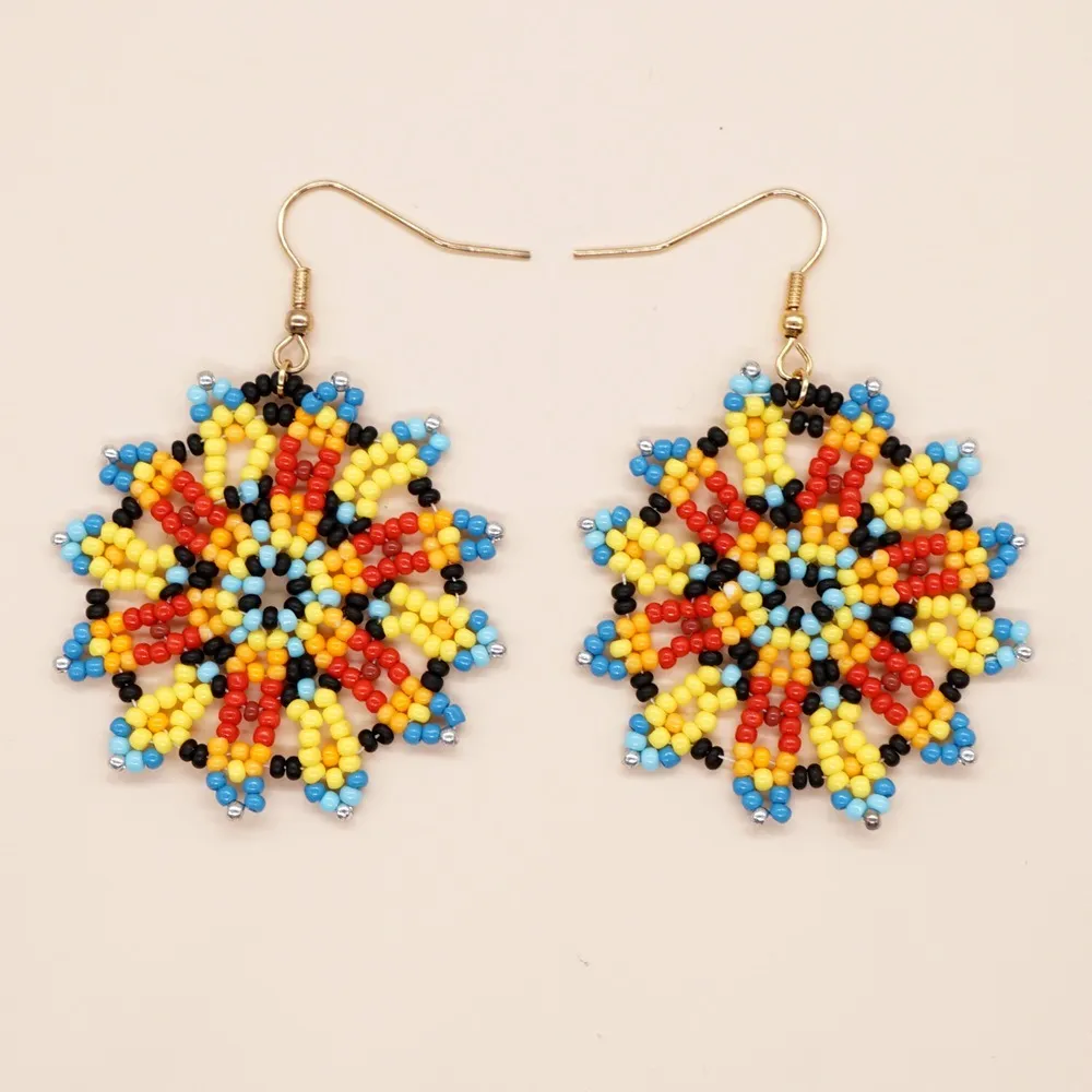 衣都精品- 新款波西米亞風米珠編織花朵耳環