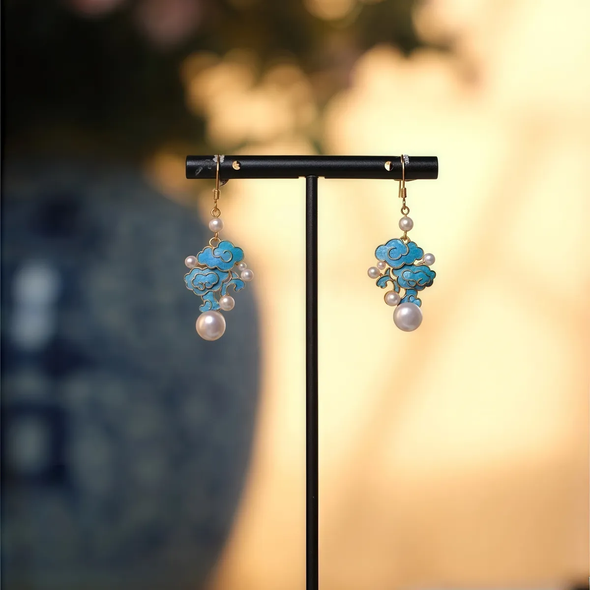 衣都精品- 新款古法燒藍仿點翠祥雲耳環