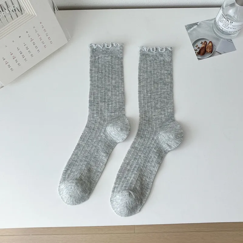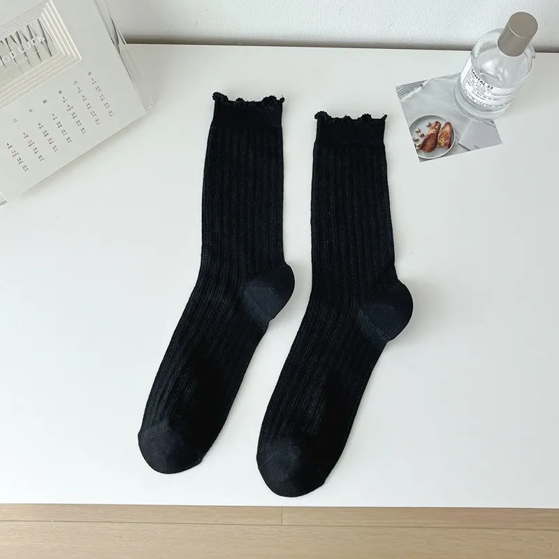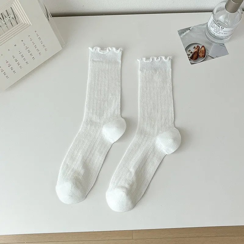 衣都精品- 新款木耳邊純色網眼鏤空襪子