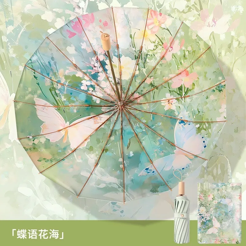 衣都精品- 新款16骨三折彩膠塗層油畫傘