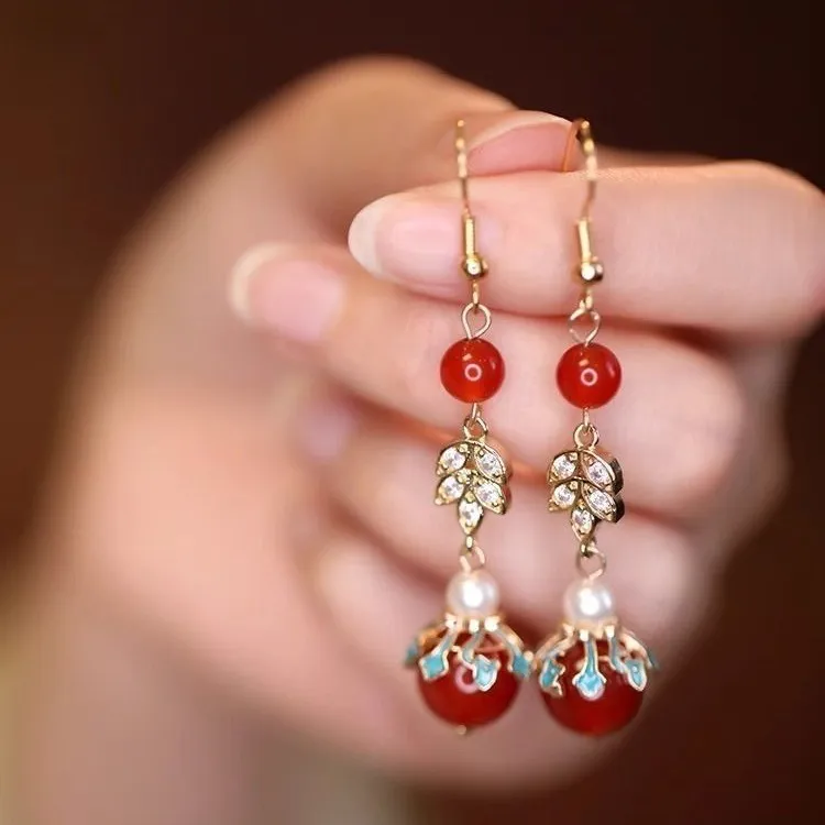 衣都精品- 新款漢服古風旗袍粉晶貝珠耳鉤