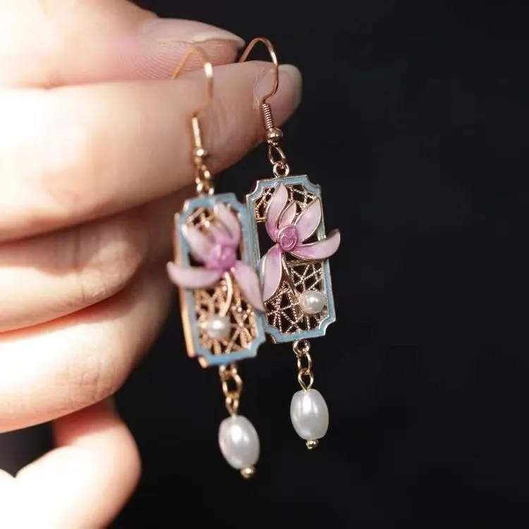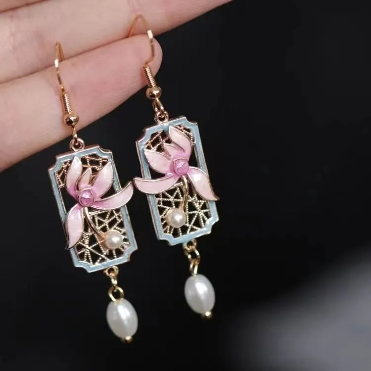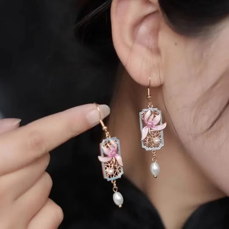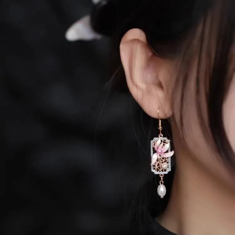 衣都精品- 新款漢服古風旗袍粉晶貝珠耳鉤
