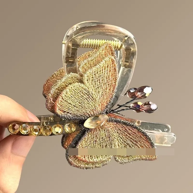 衣都精品- 新款氣質復古風刺繡蝴蝶抓夾髮飾