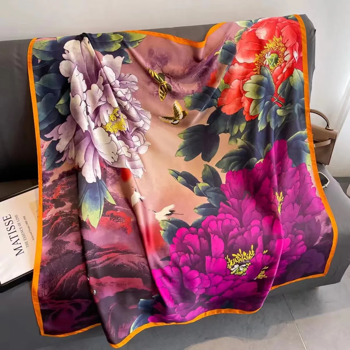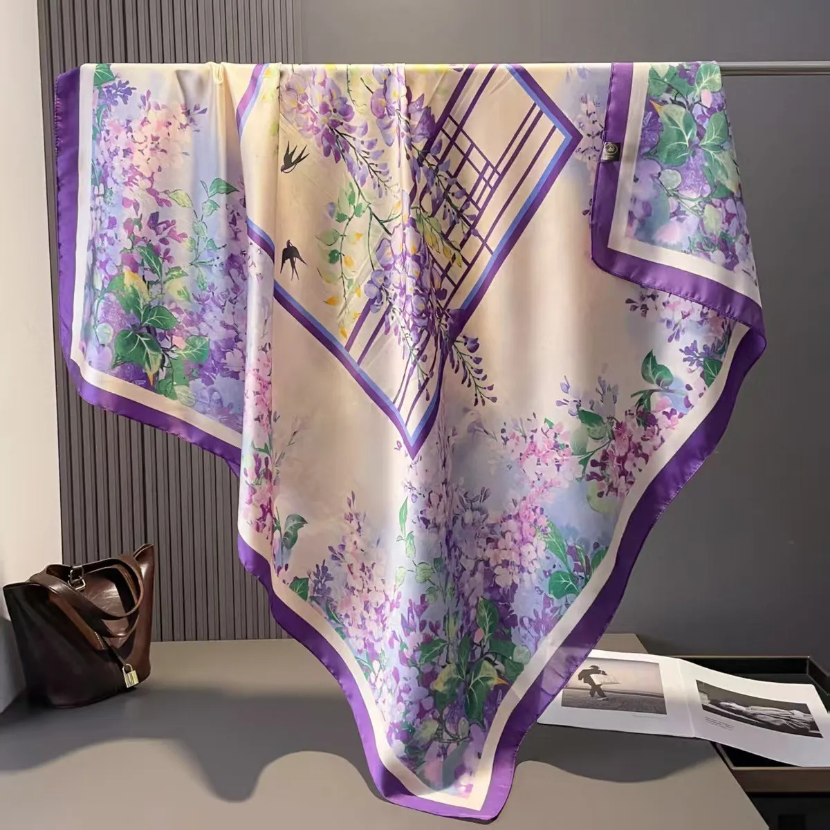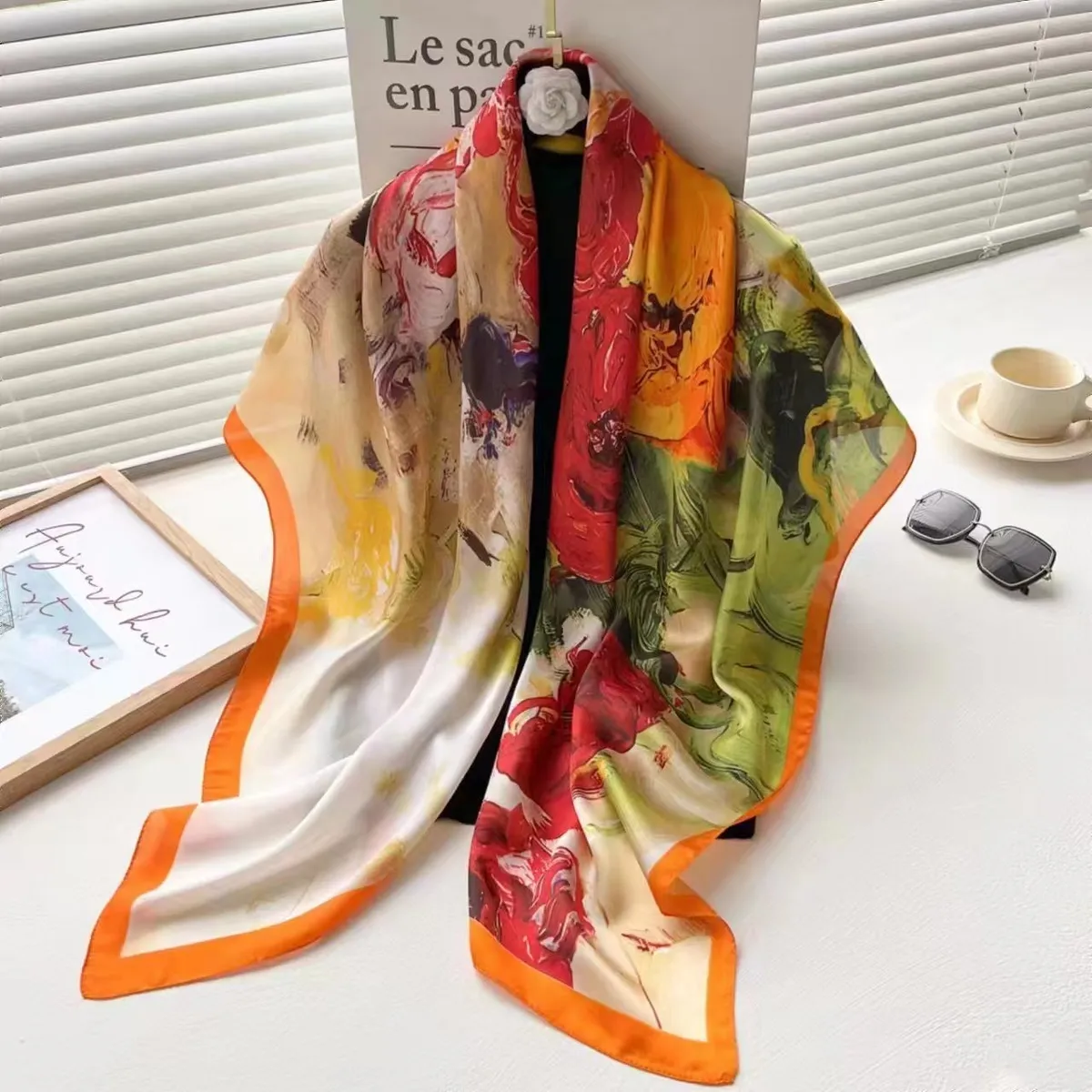衣都精品- 新款時尚百搭110*110緞面印花圍巾