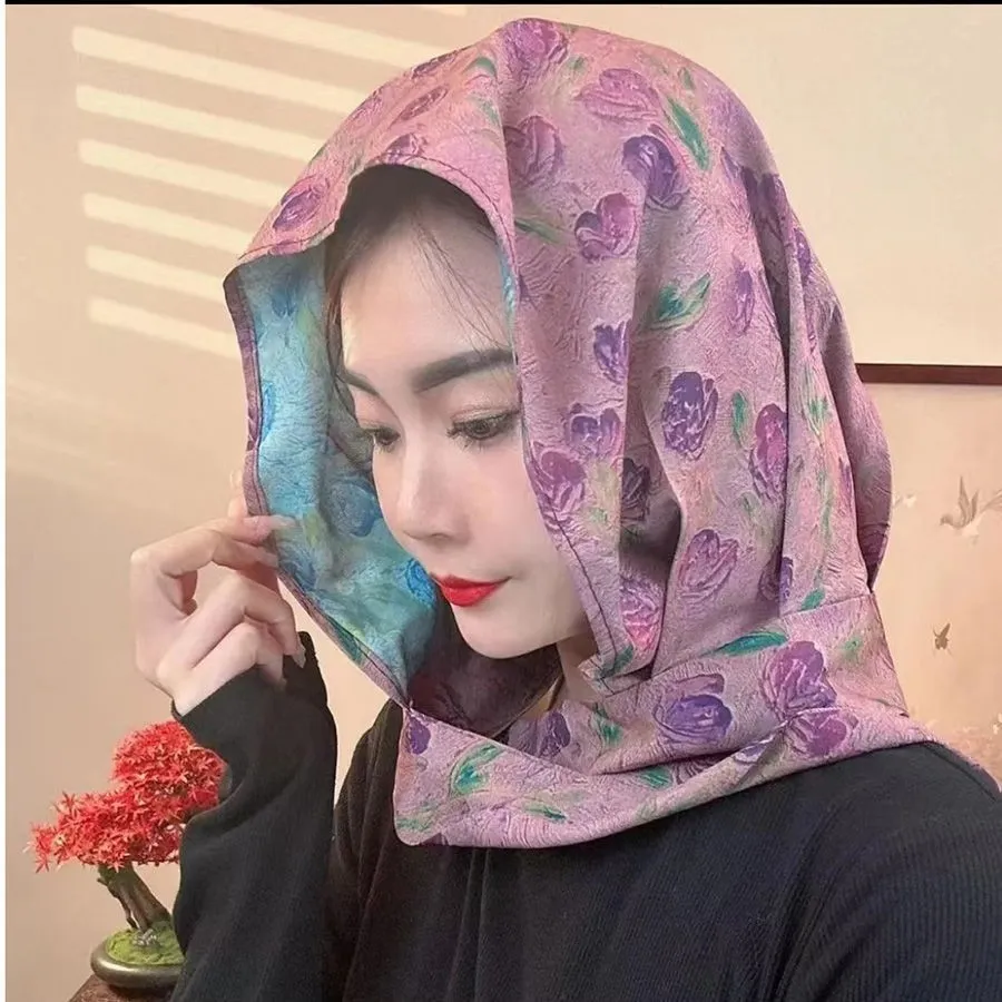 衣都精品- 新款時尚防曬羅紋緞面絲巾帽圍巾