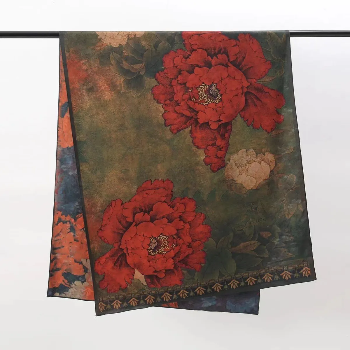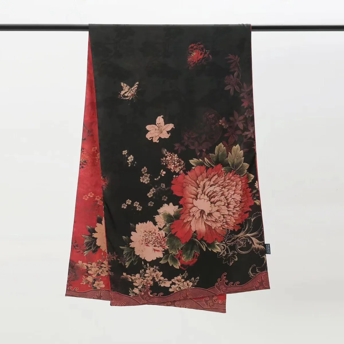 衣都精品- 新款復古風香雲紗花羅絲巾