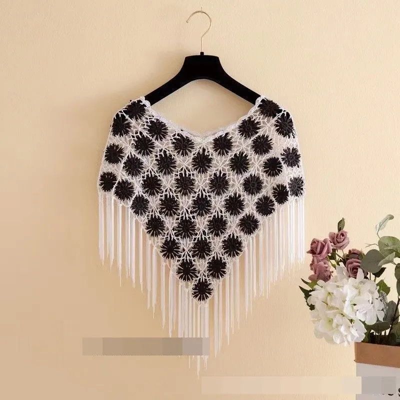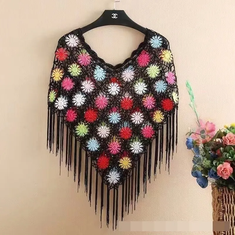 衣都精品- 新款寬鬆手工鉤花針織鏤空披肩