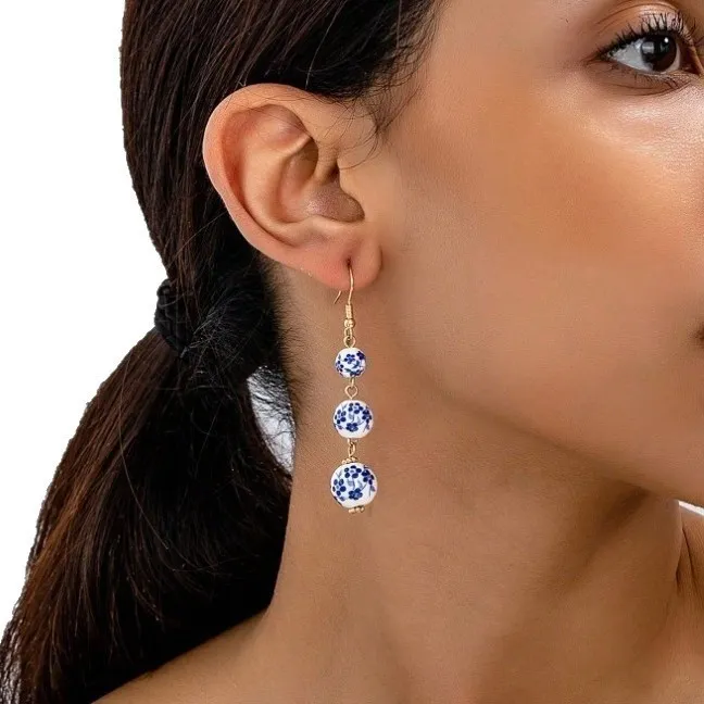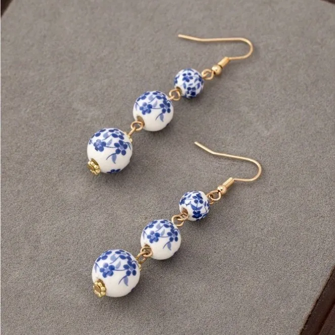 衣都精品- 新款復古青花瓷陶瓷珠串耳環