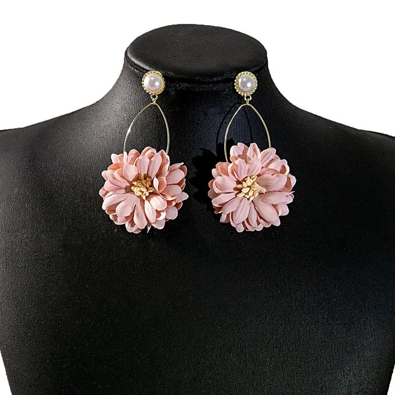 衣都精品- 新款時尚個性誇張粉紅色花朵耳環
