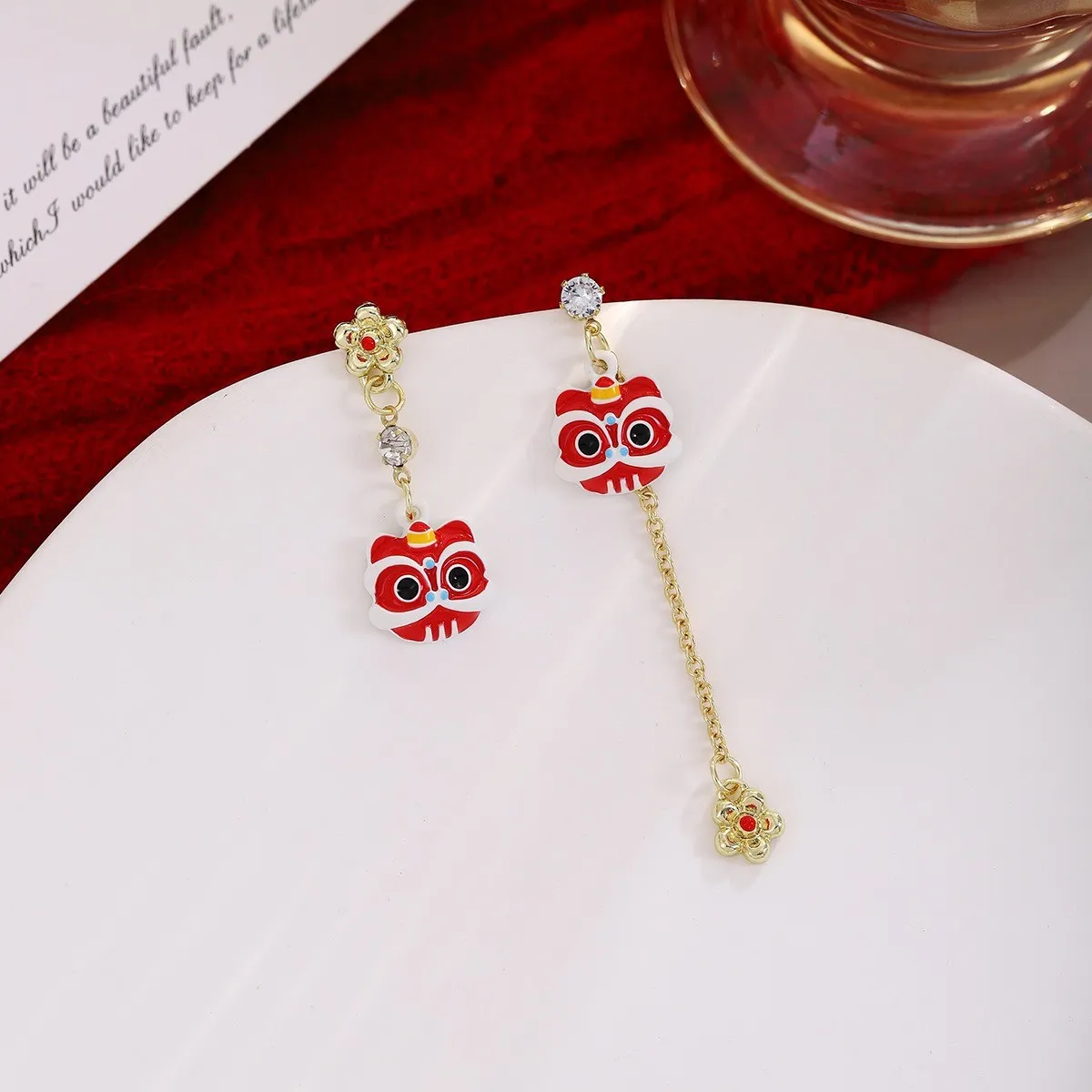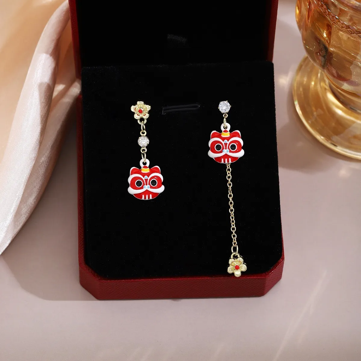 衣都精品- 新款輕奢小眾不對稱醒獅流蘇耳環