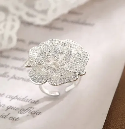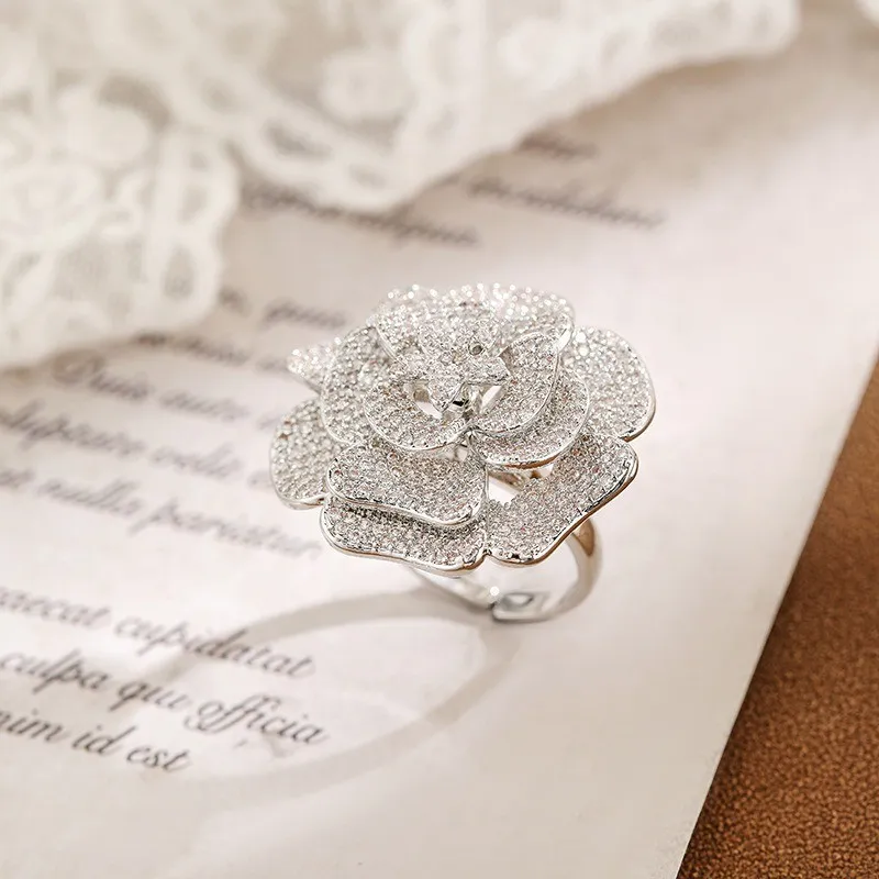 衣都精品- 新款時尚復古氣質山茶花滿鋯戒指