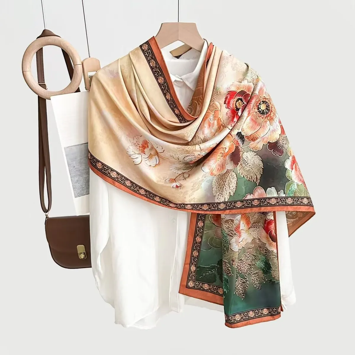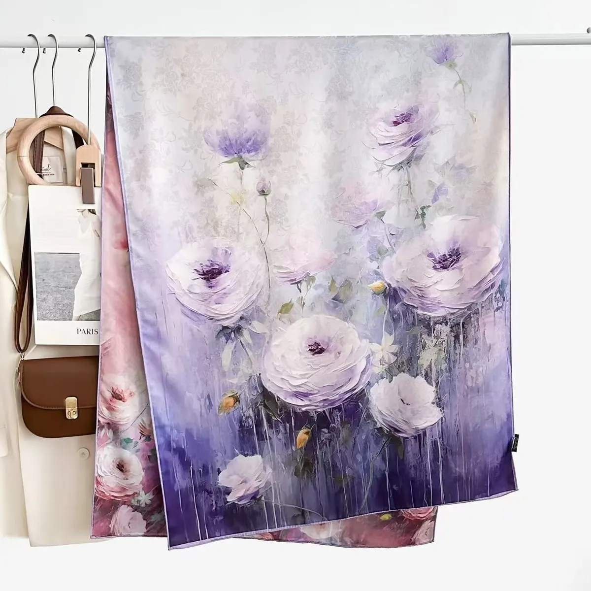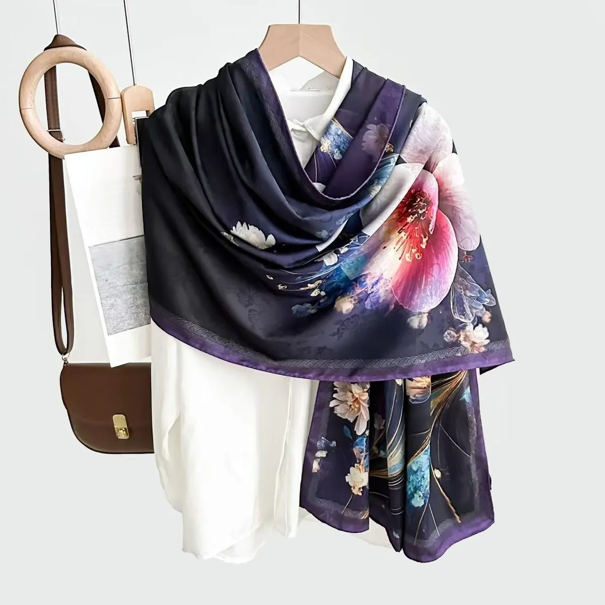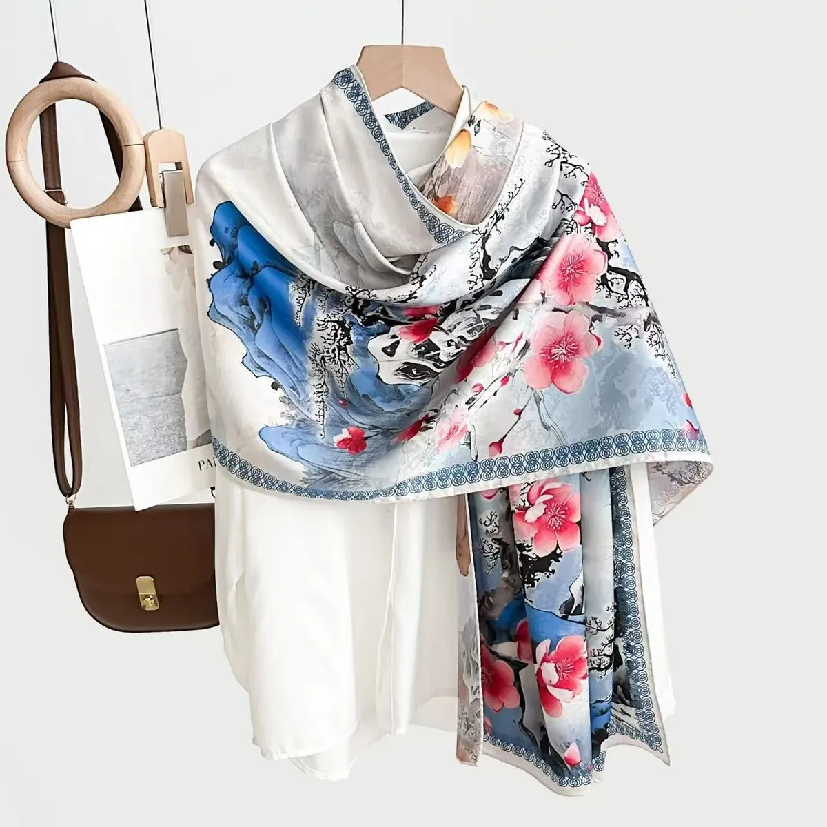衣都精品- 新款香雲紗180*70中國風花卉披肩絲巾