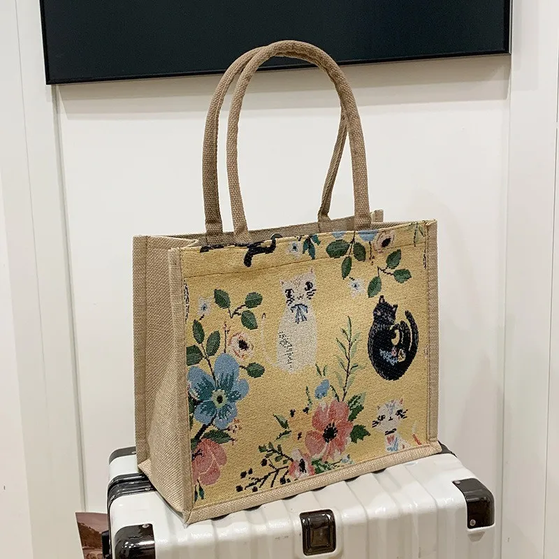 衣都精品- 新款時尚百搭刺繡可愛貓咪手提大容量托特包