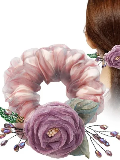 衣都精品- 新款高級感大腸髮圈網紗頭花髮飾