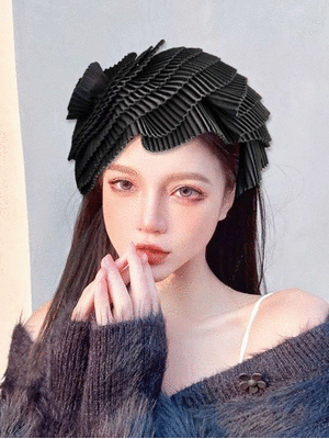 衣都精品- 新款褶皺大花頭箍晚宴洋氣半帽髮飾