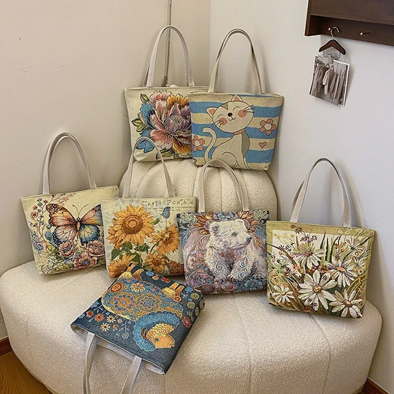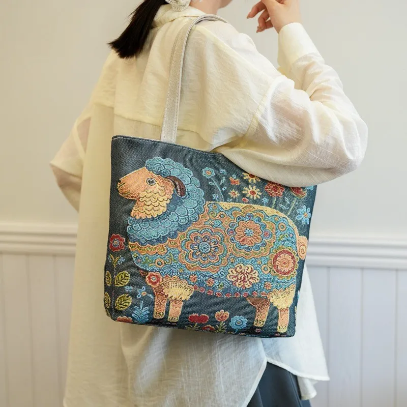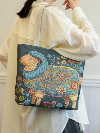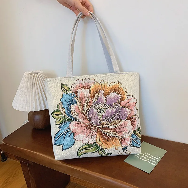 衣都精品- 新款大容量雙面刺繡手提托特包