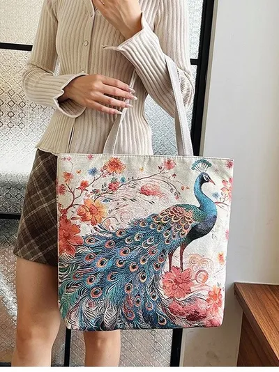 衣都精品- 新款大容量雙面刺繡手提托特包